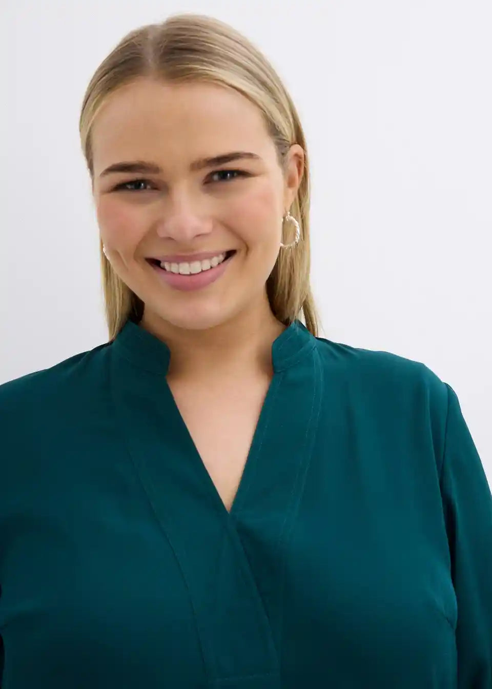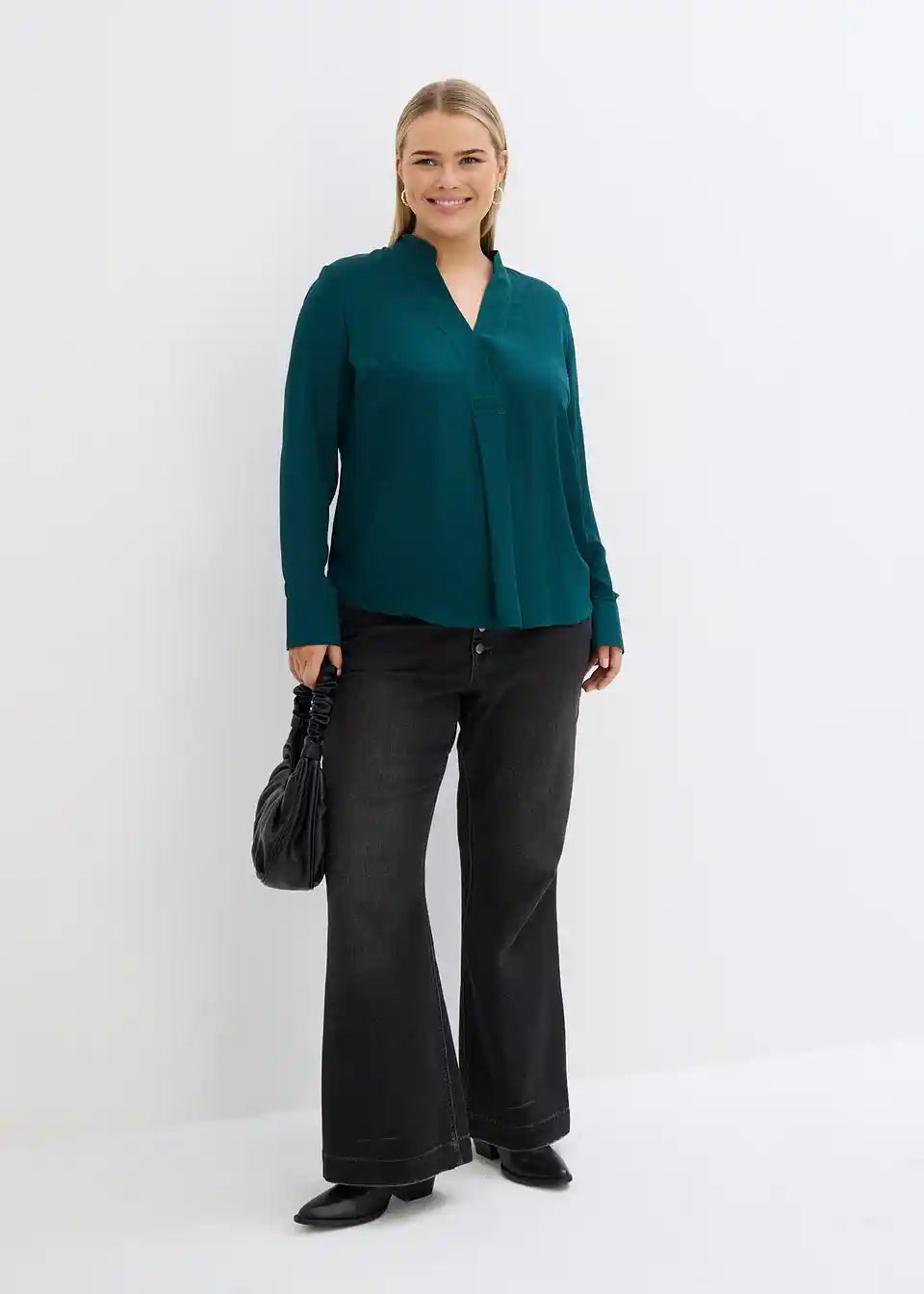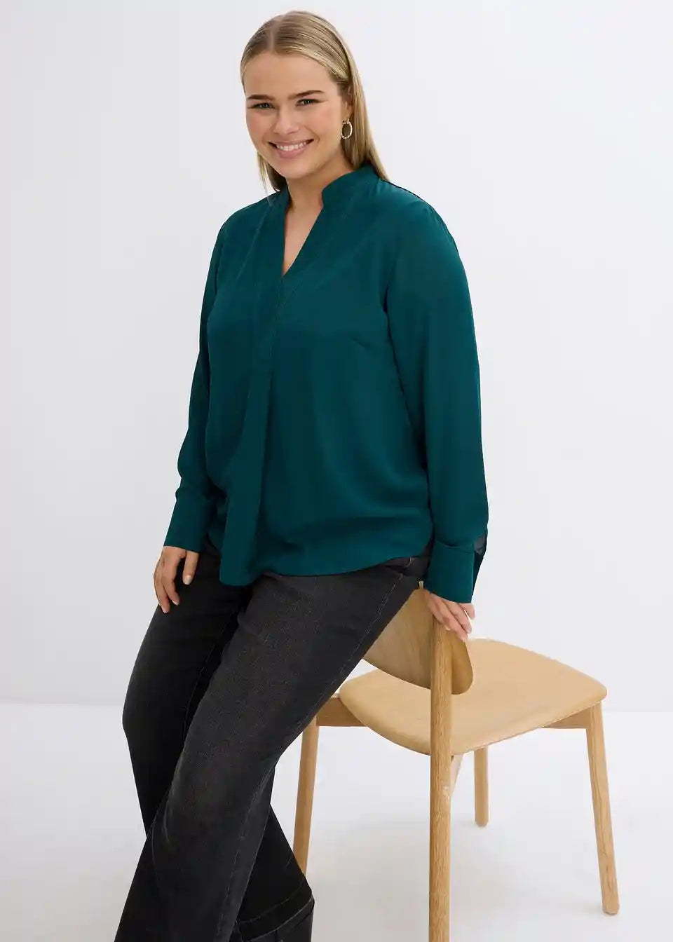 moderna šifonska bluza s V-izrezom i bočnim prorezima