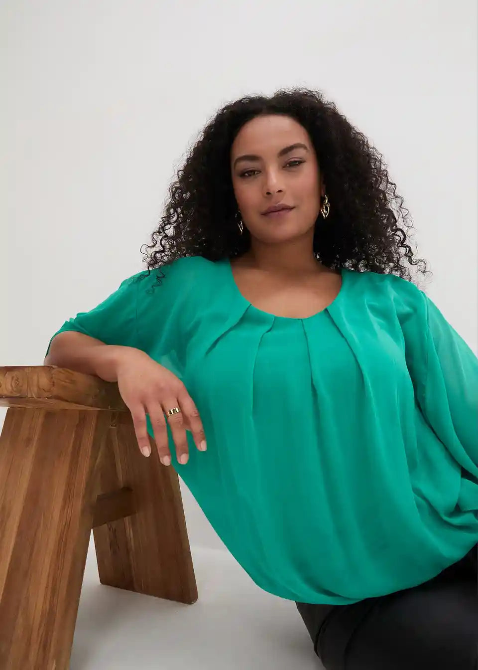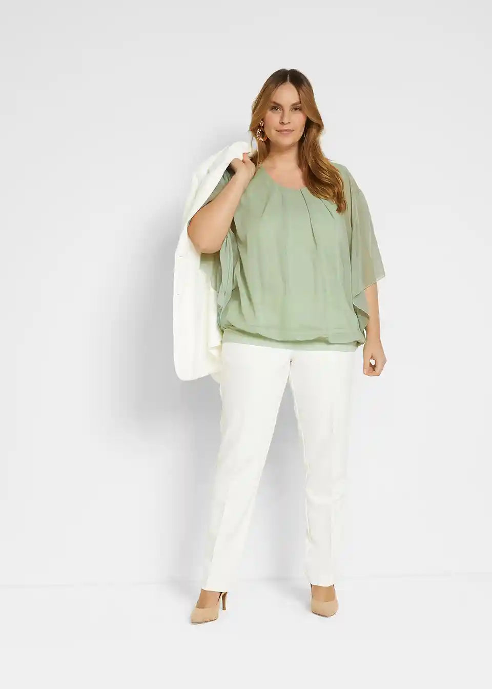 Široki lepršavi rukavi, duljina cca. 69 cm (vel.36) do cca. 78 cm (vel.54), periva u perilici rublja.