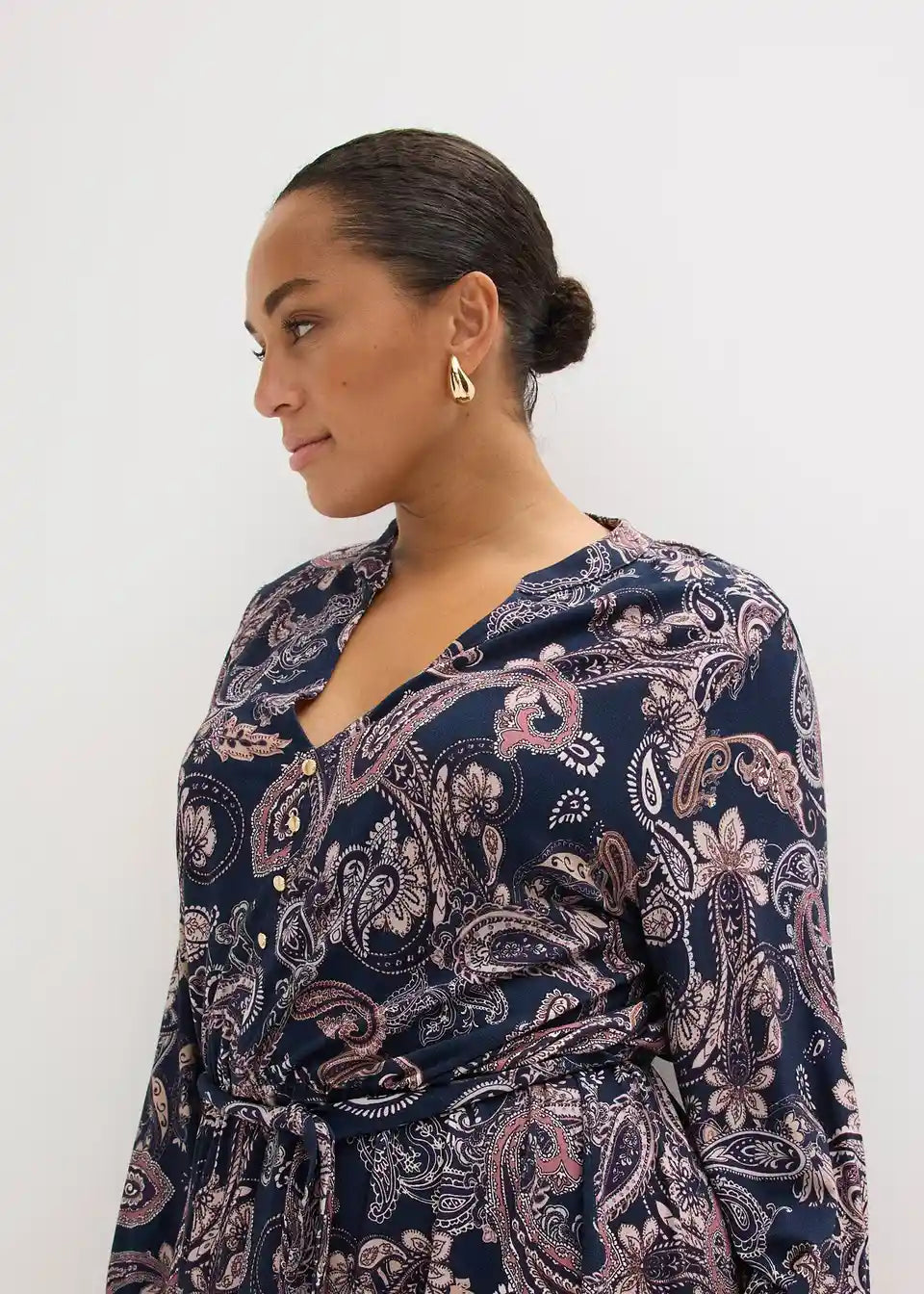 ženstvena Jersey haljina od mekanog Viskose-miksa s vezicom u struku i dekorativnim gumbima sprijeda
