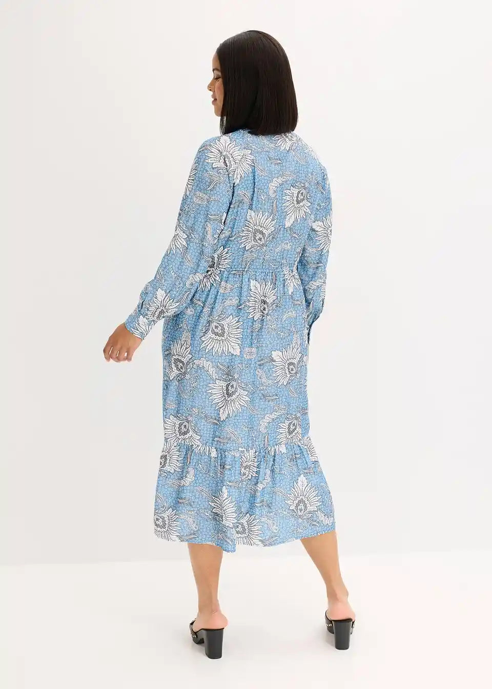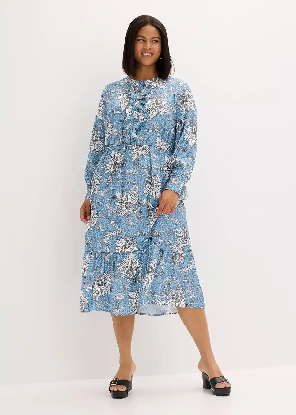 Duga haljina s voluminoznim rukavima i lepršavim donjim dijelom