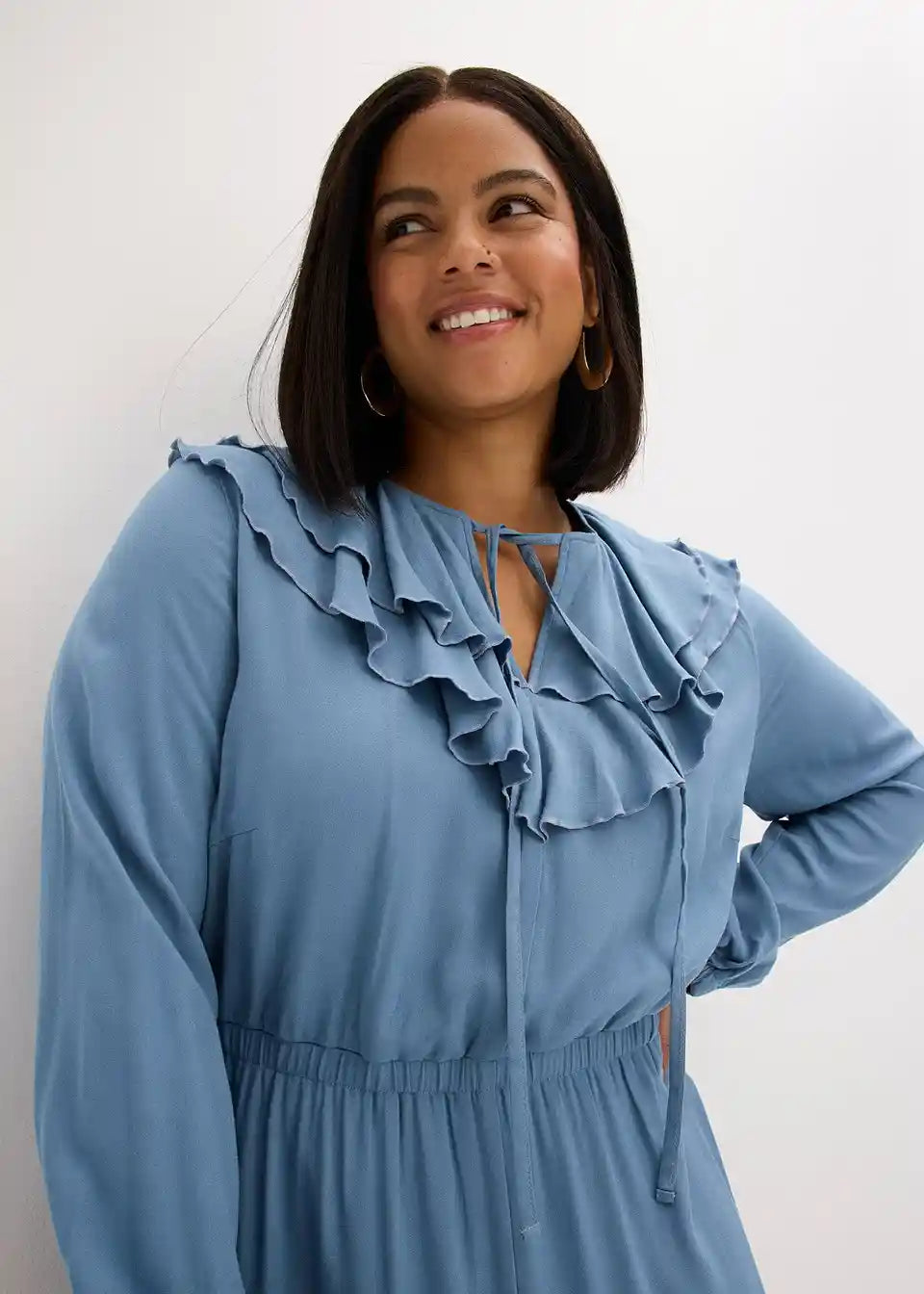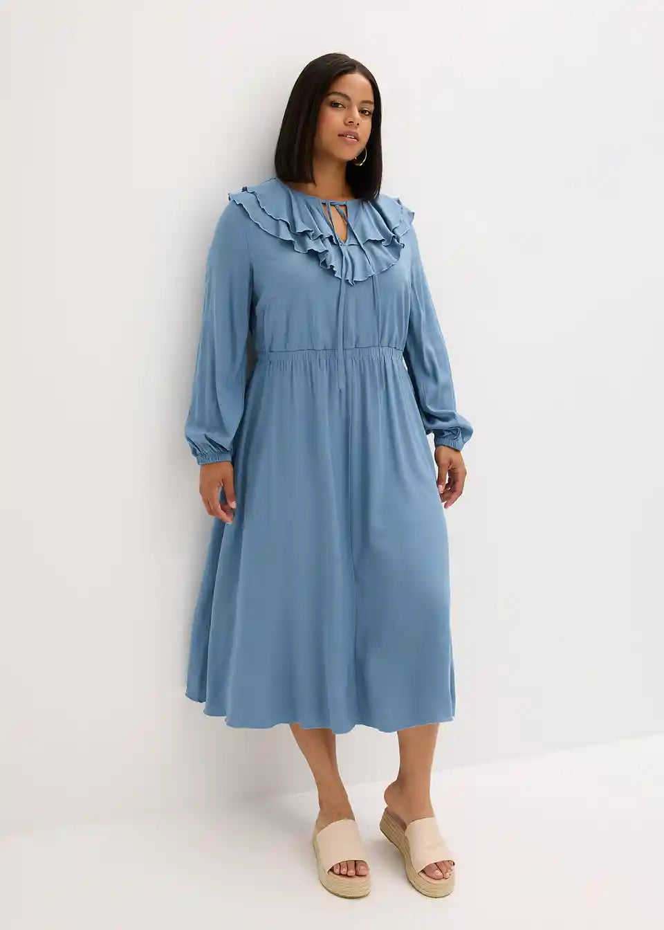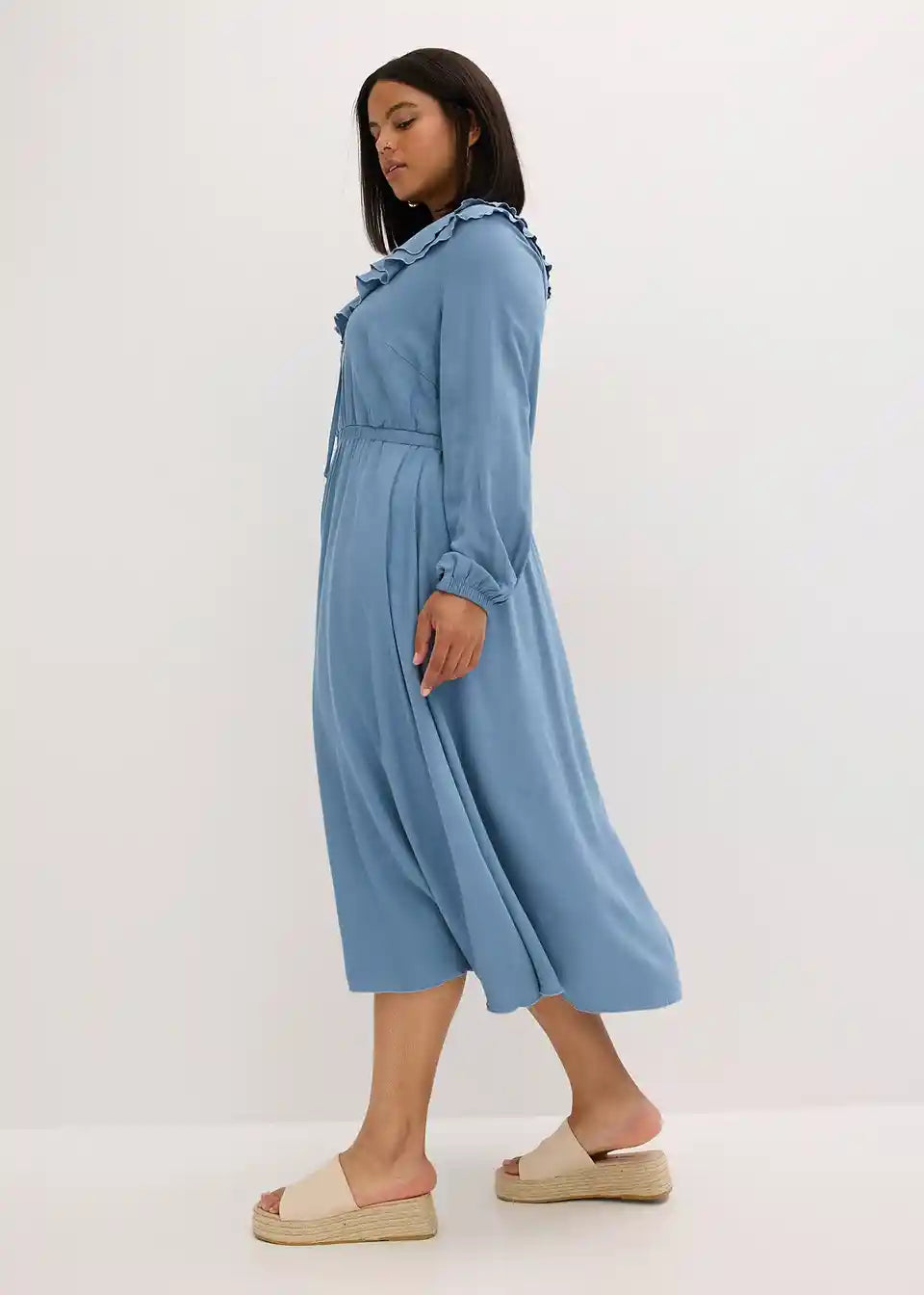 Duga haljina s prekrasnom kragnom i volan suknjom