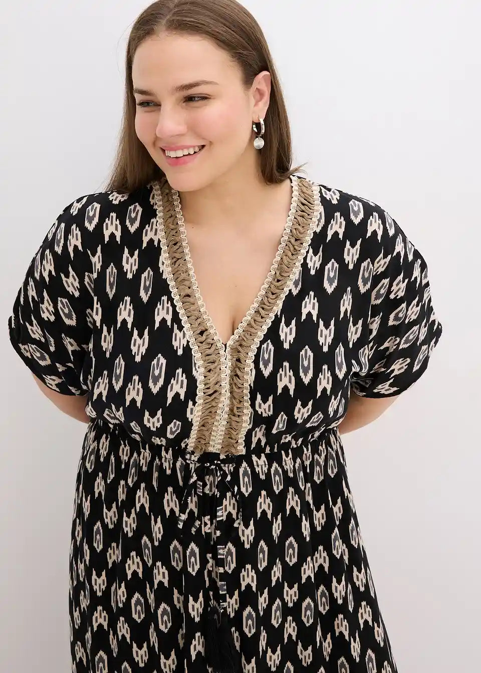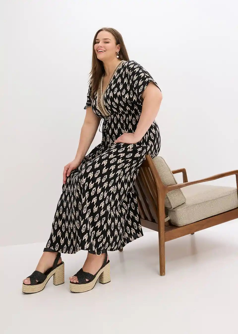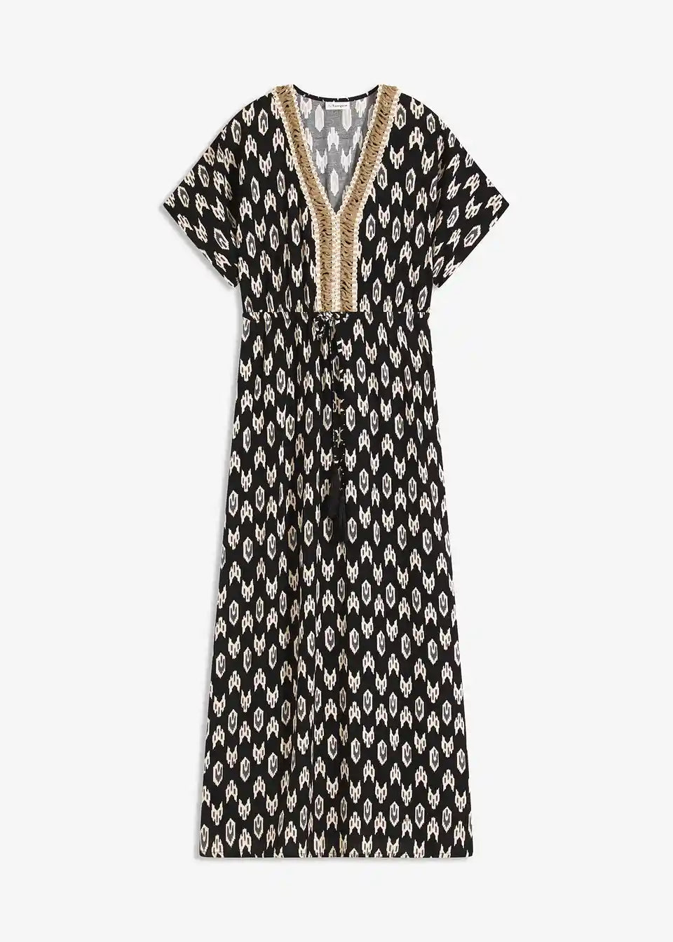 tiskana maksi haljina od lepršave viskoze s ukrasnom aplikacijom sprijeda na izrezu