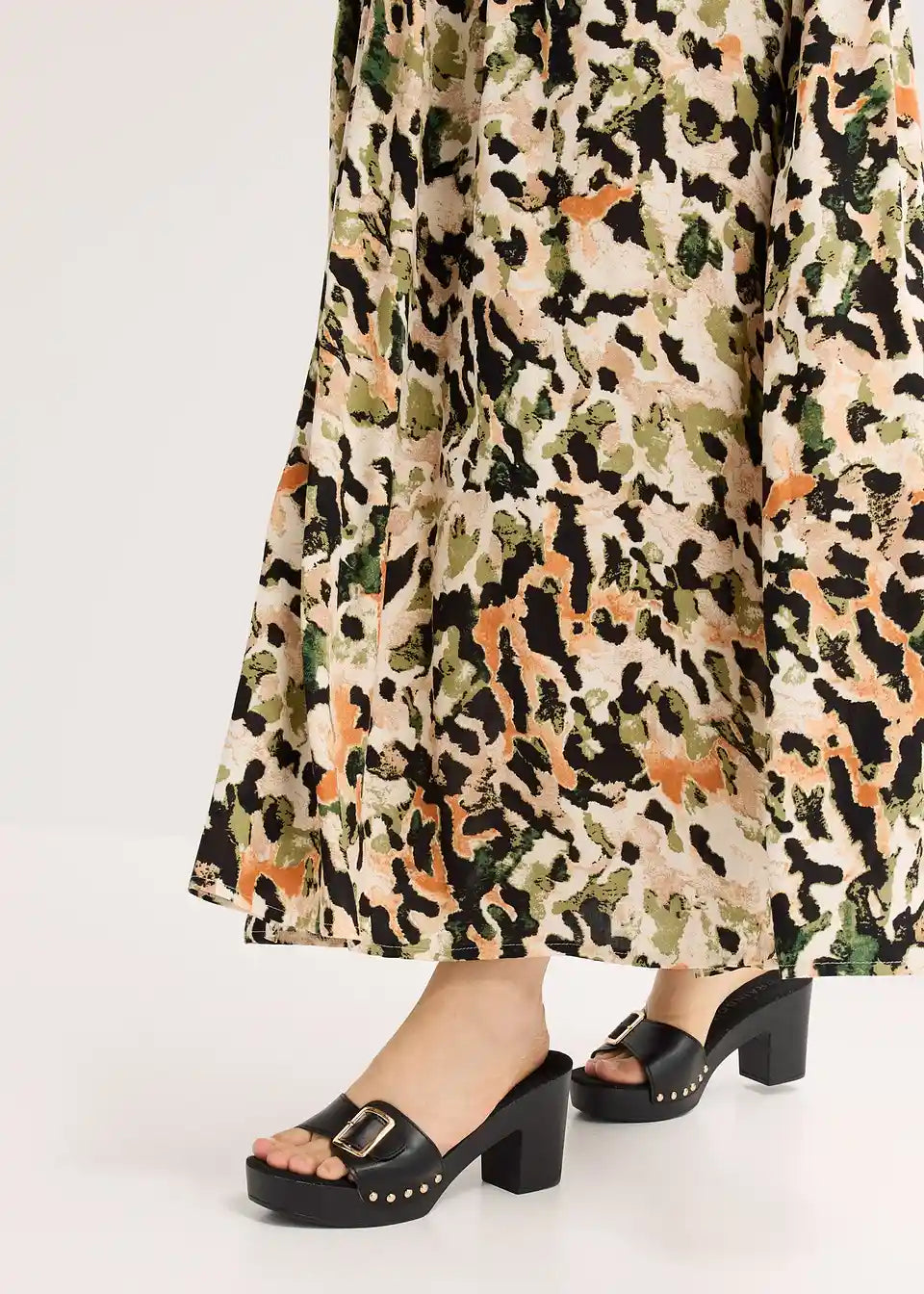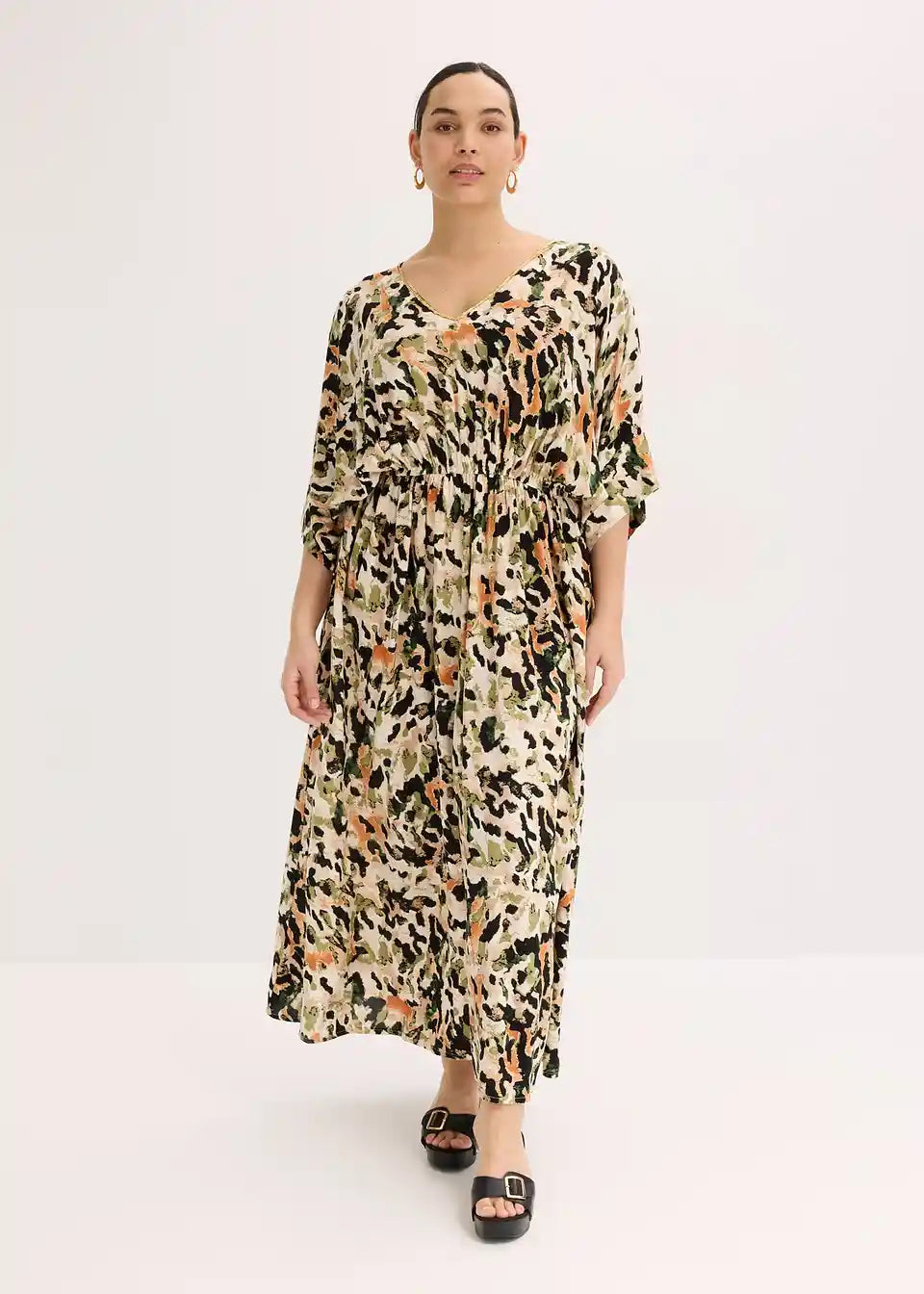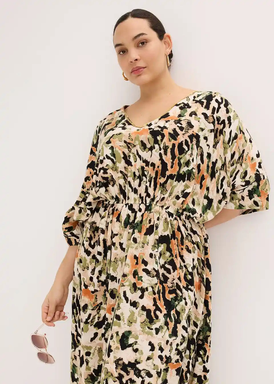 moderna maksi haljina s printom od lepršave viskoze s dekorativnom aplikacijom od flitera sprijeda na V-izrezu