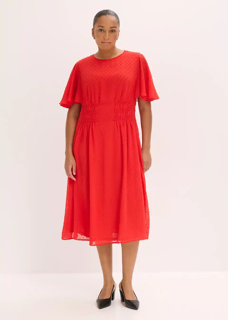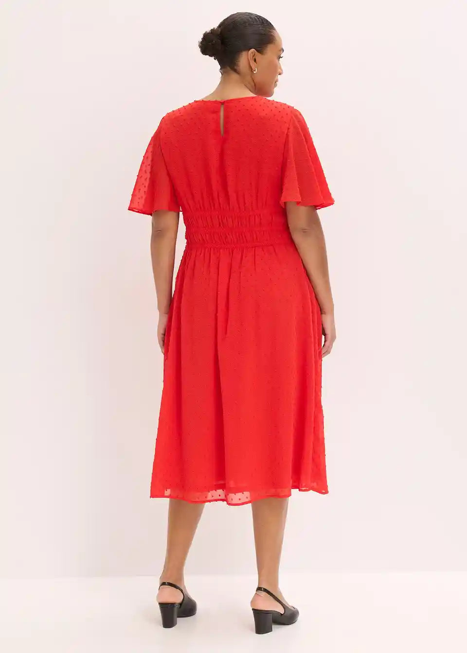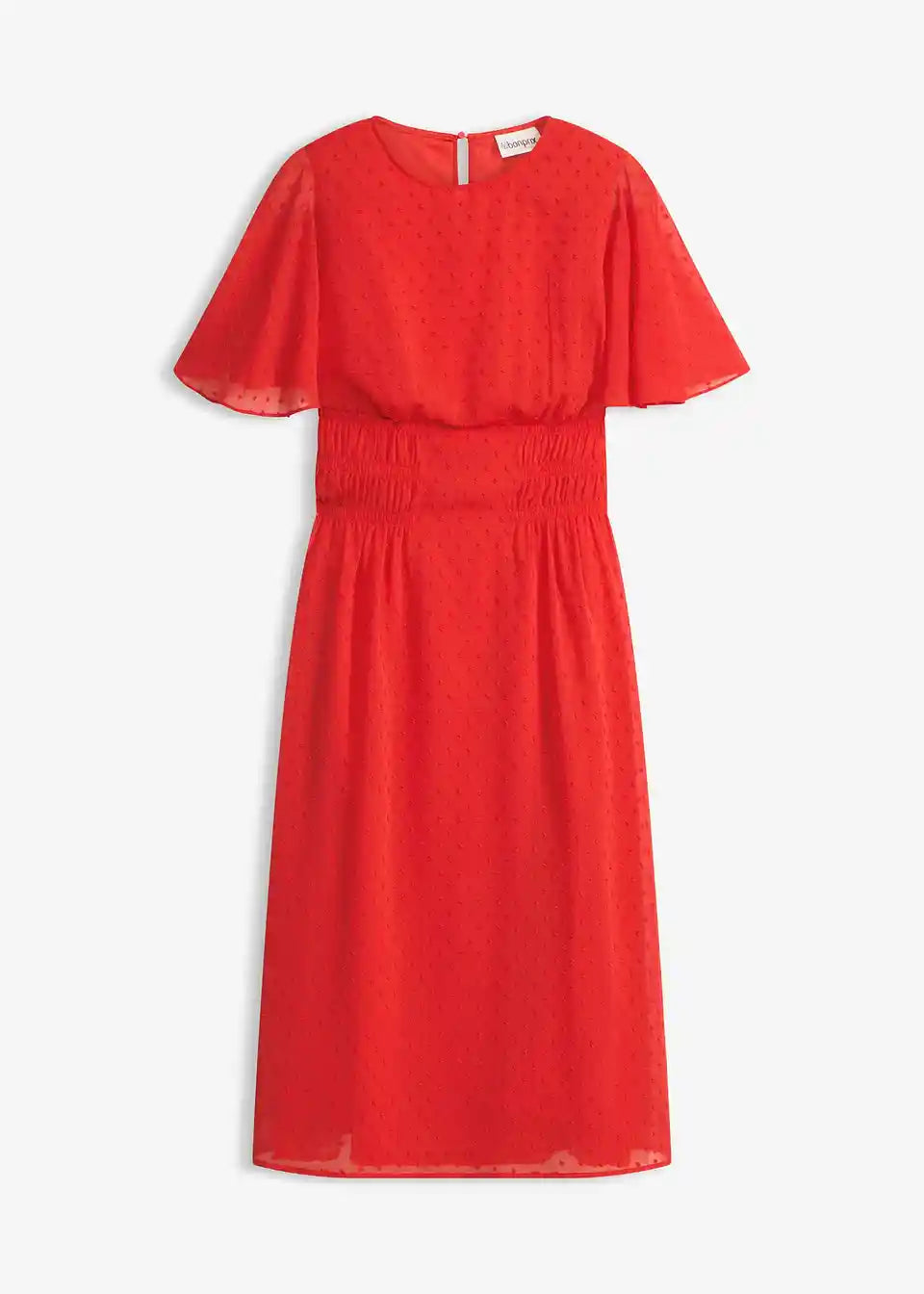 ženstvena midi haljina od laganog strukturiranog materijala s dekorativnim elastičnim detaljem u struku