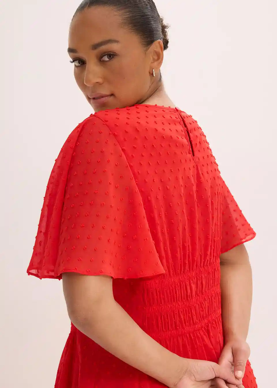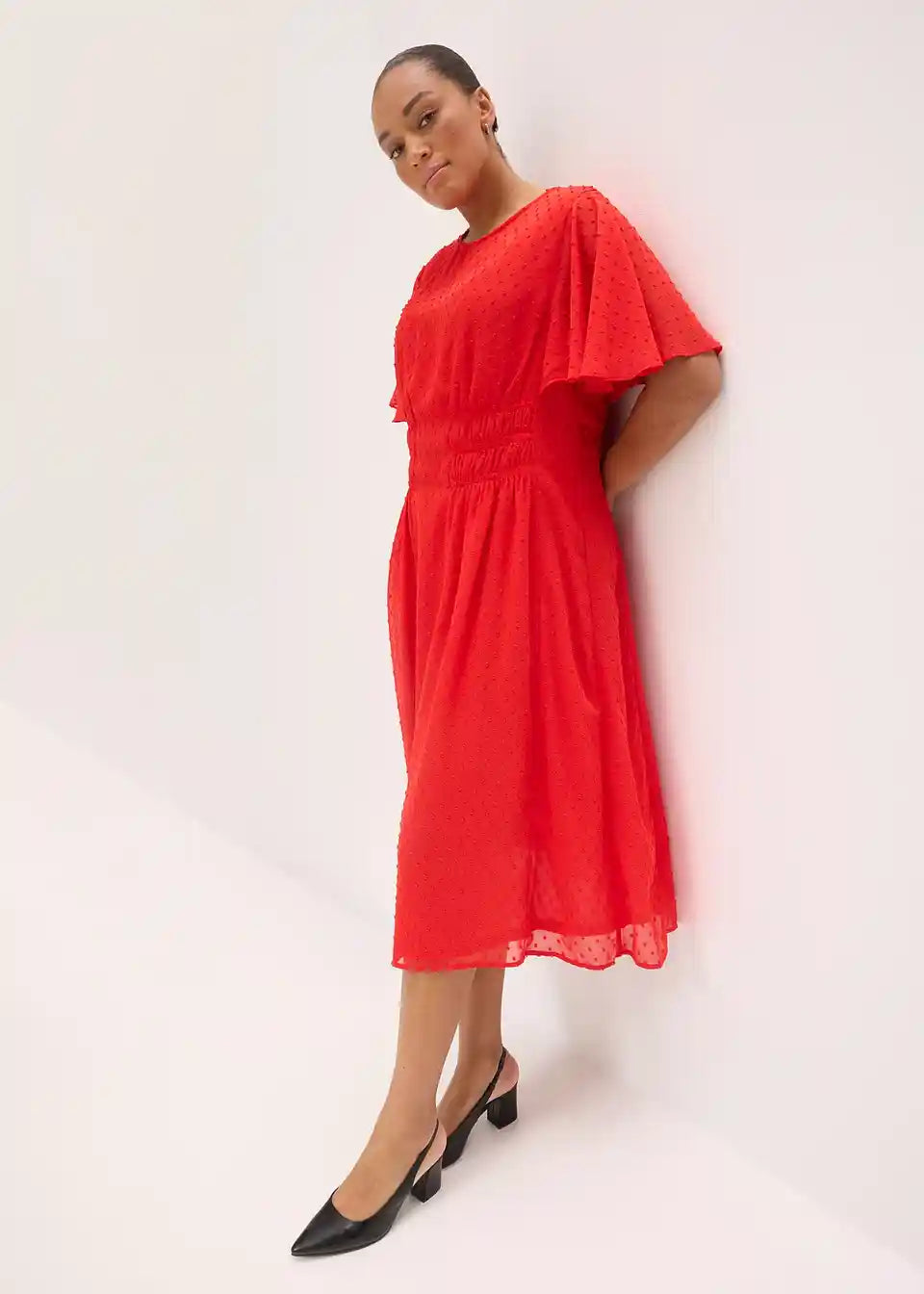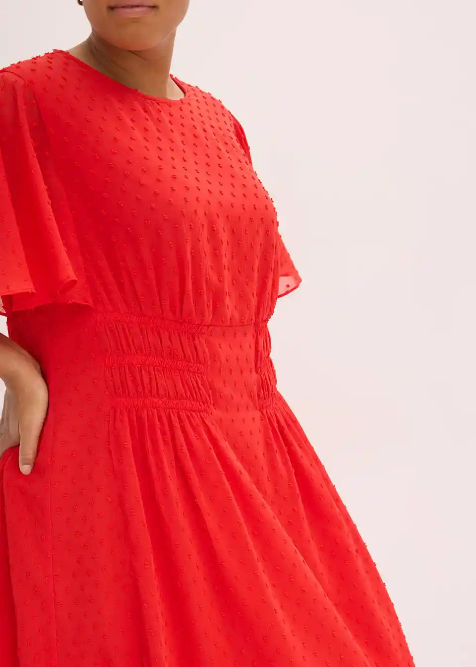 ženstvena midi haljina od laganog strukturiranog materijala s dekorativnim elastičnim detaljem u struku