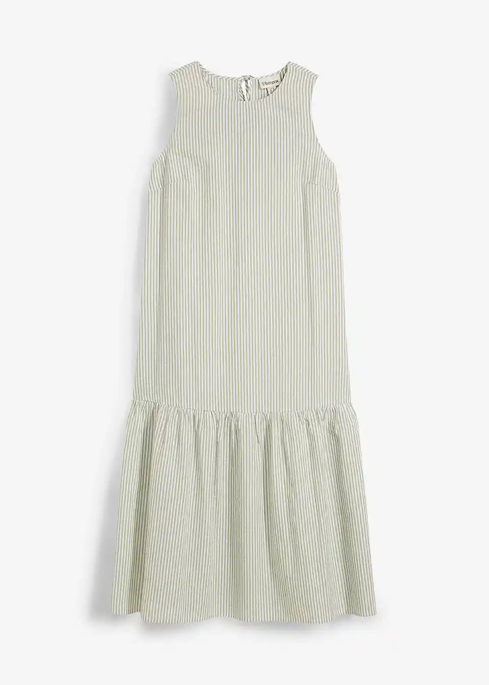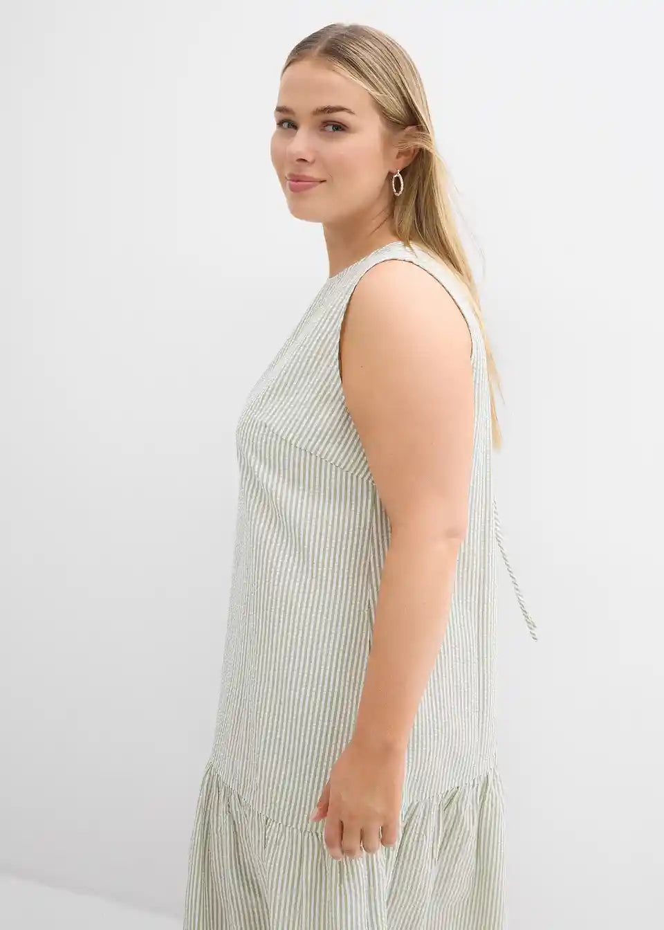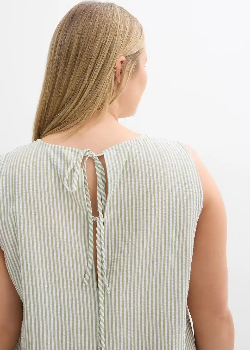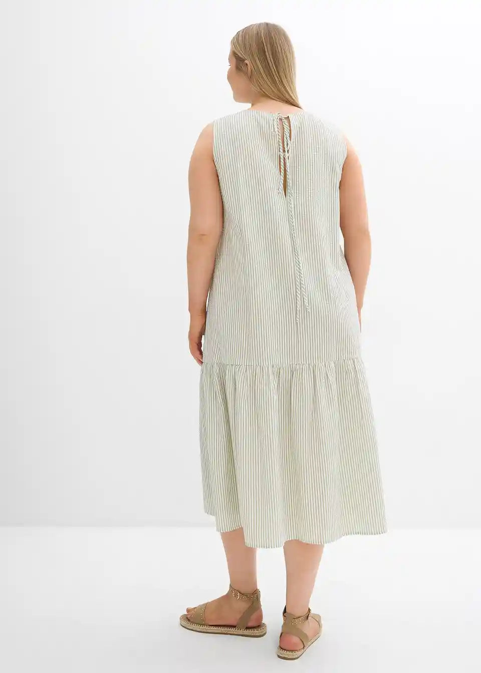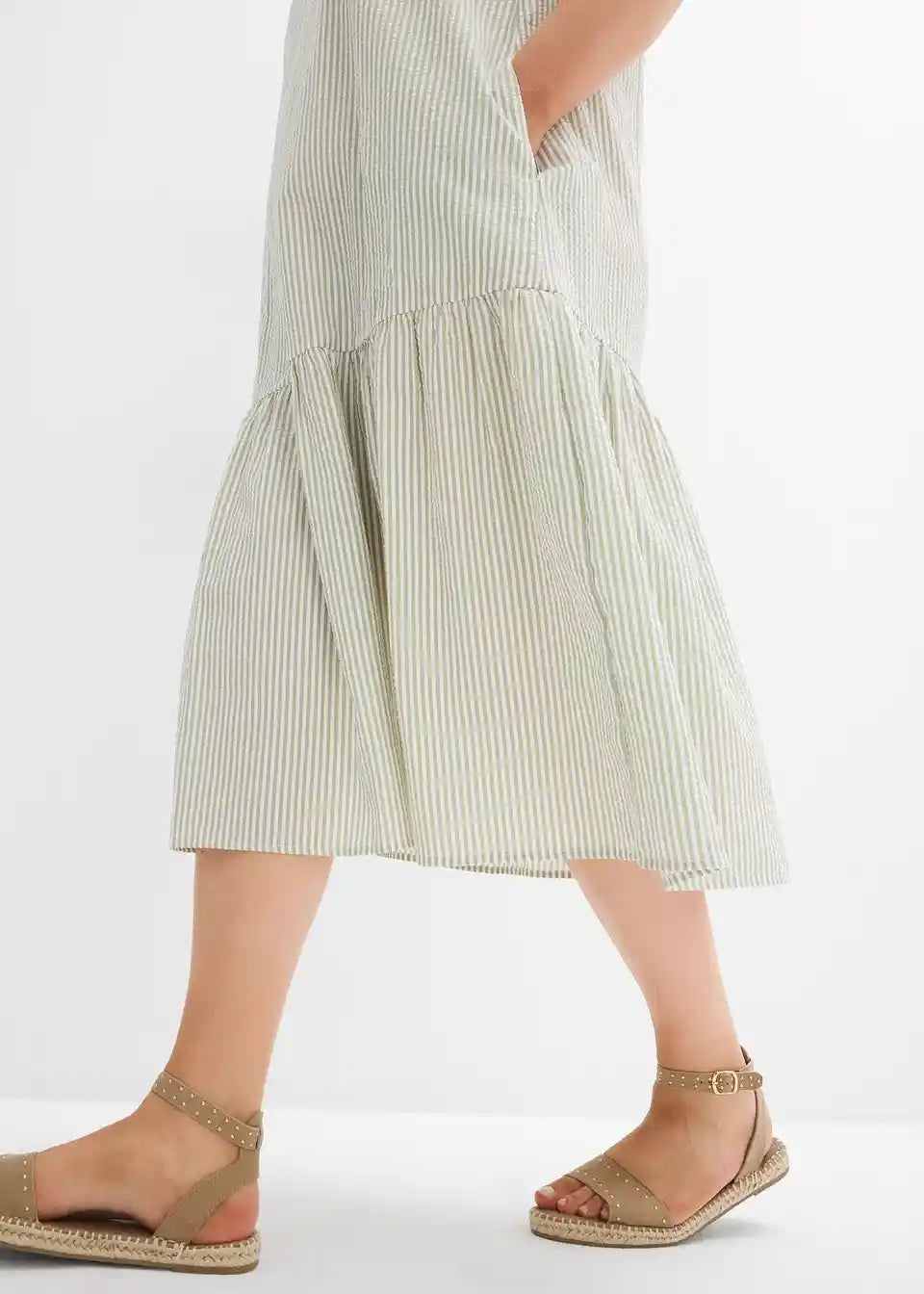 Ljetna haljina od izvrsnog seersucker materijala. Na leđima se zatvara s 2 vrpce za vezanje.