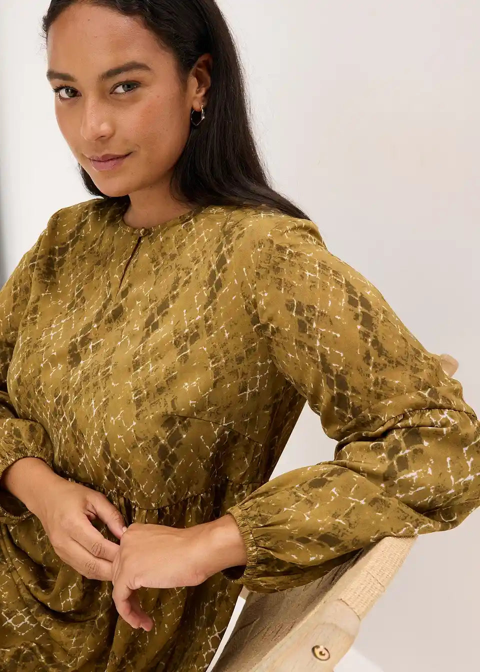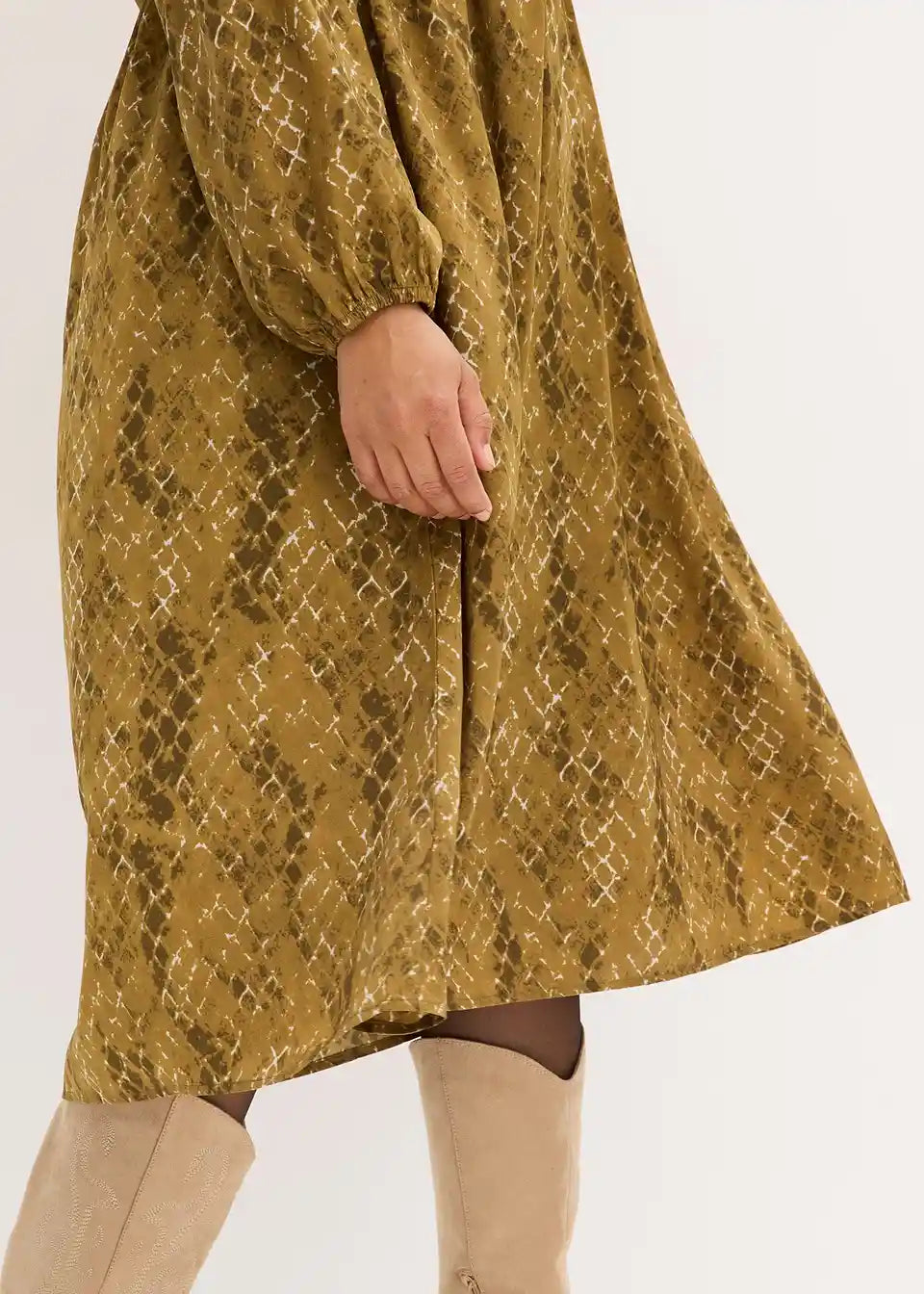 Saten haljina s voluminoznim rukavima i laganim strukiranjem