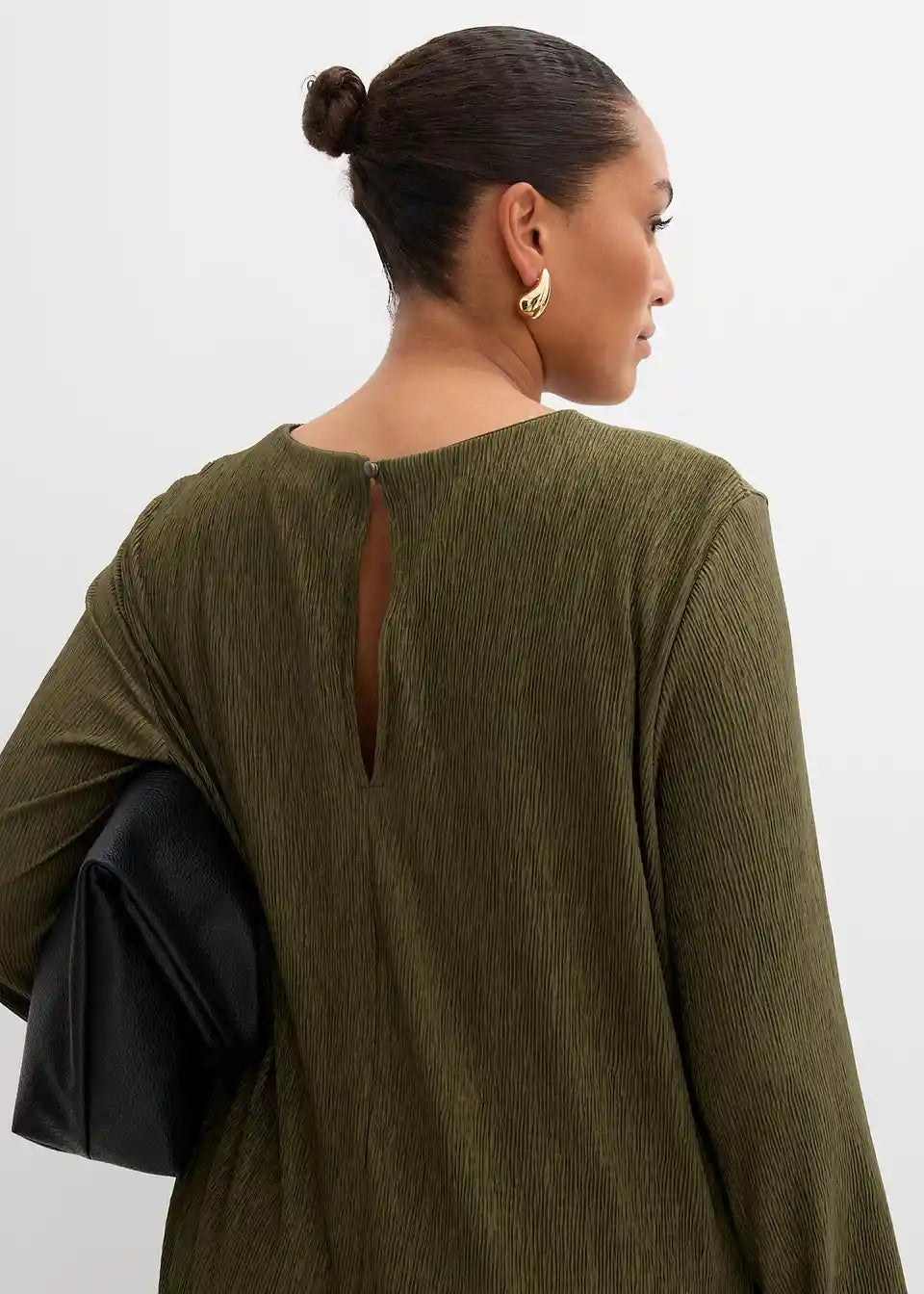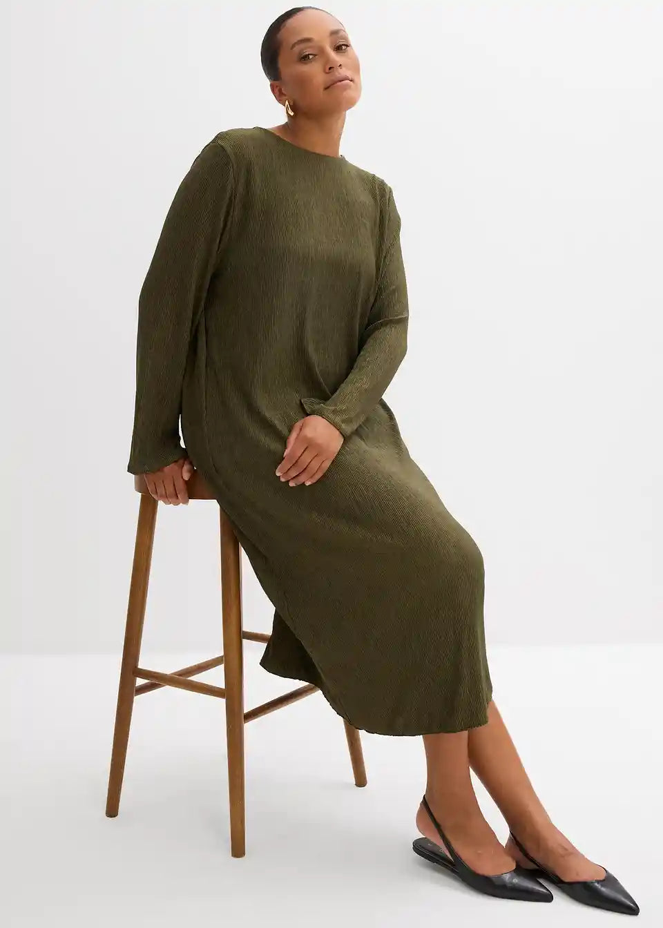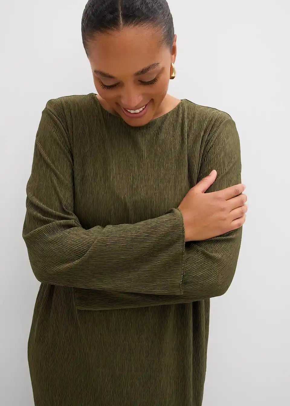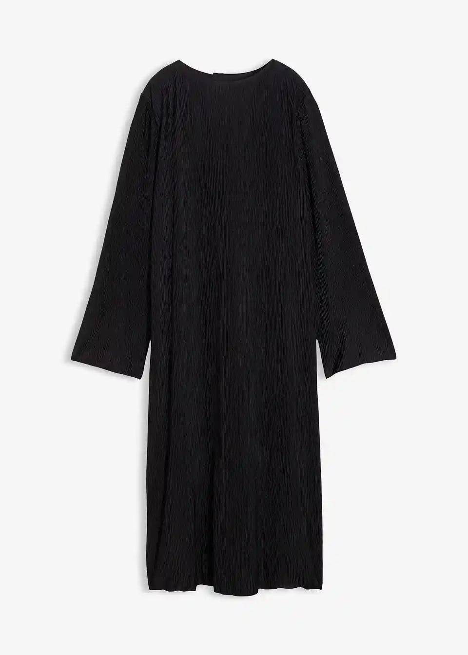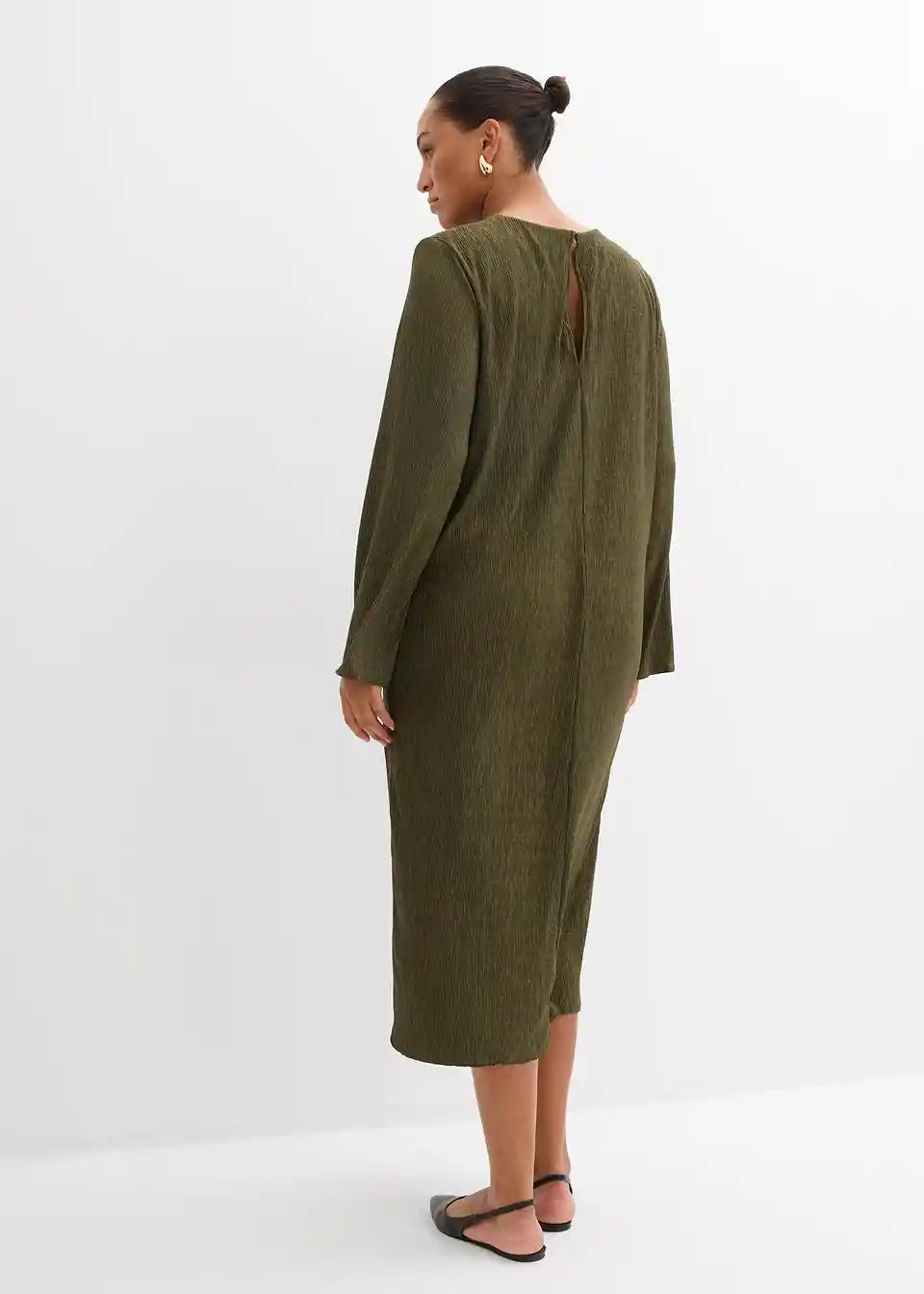 Pravo rezana haljina s dugim rukavima, otvor s rupicom straga u Crinkle izgledu