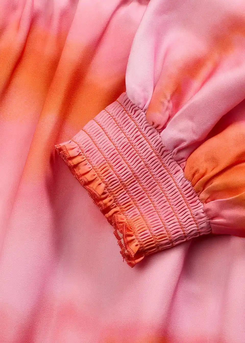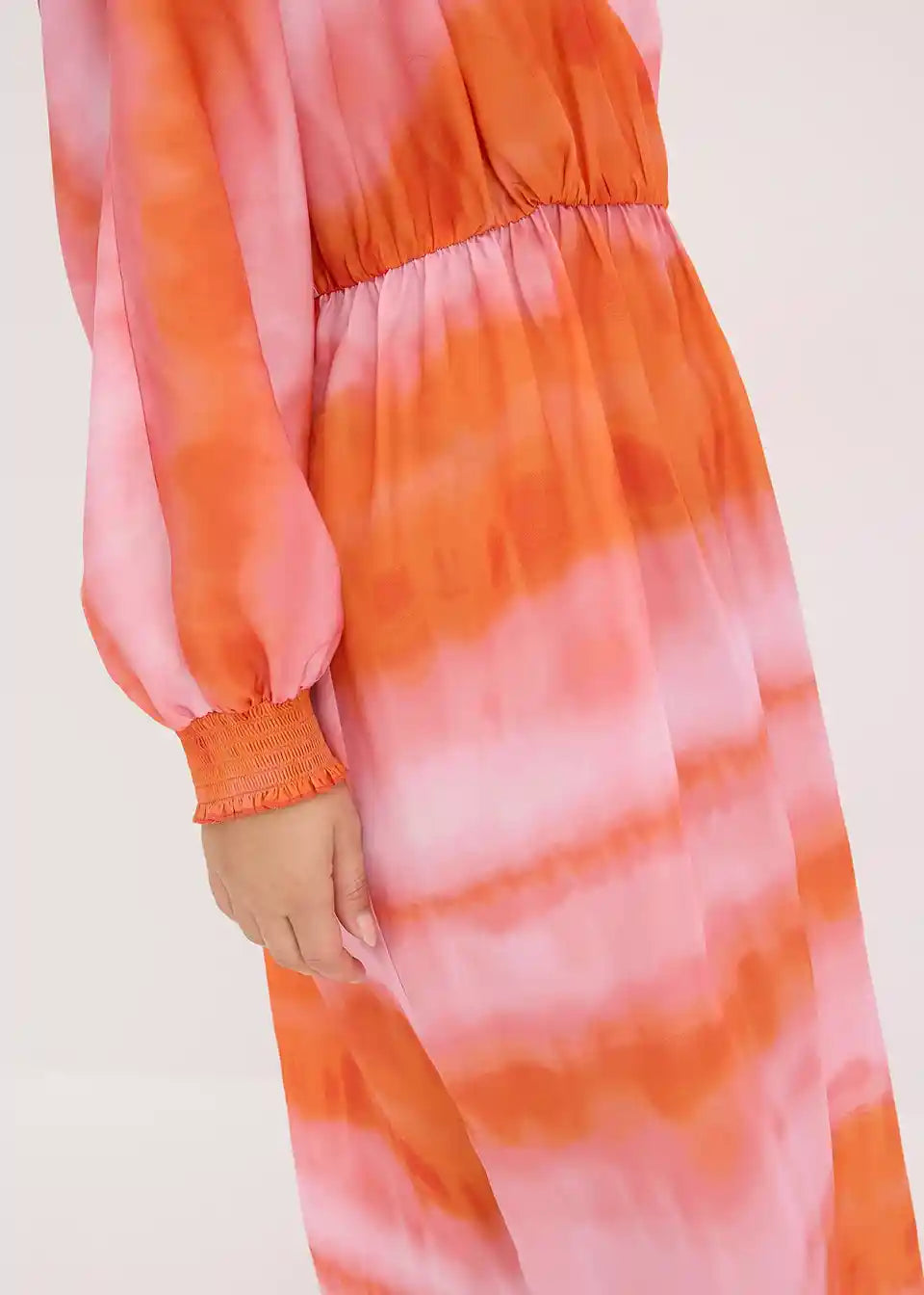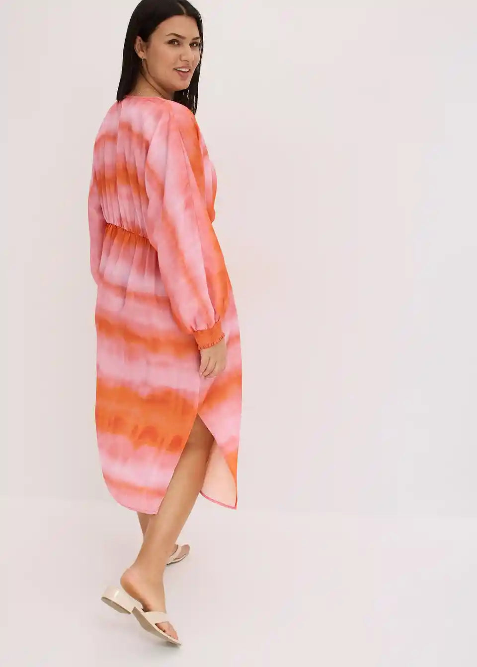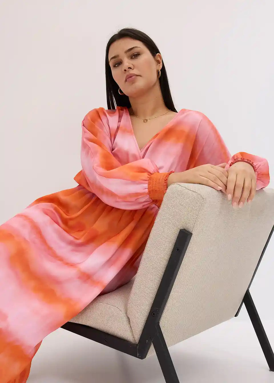 tiskana midi haljina od lepršavog satena s ljetnim batik uzorkom i široko krojenim rukavima