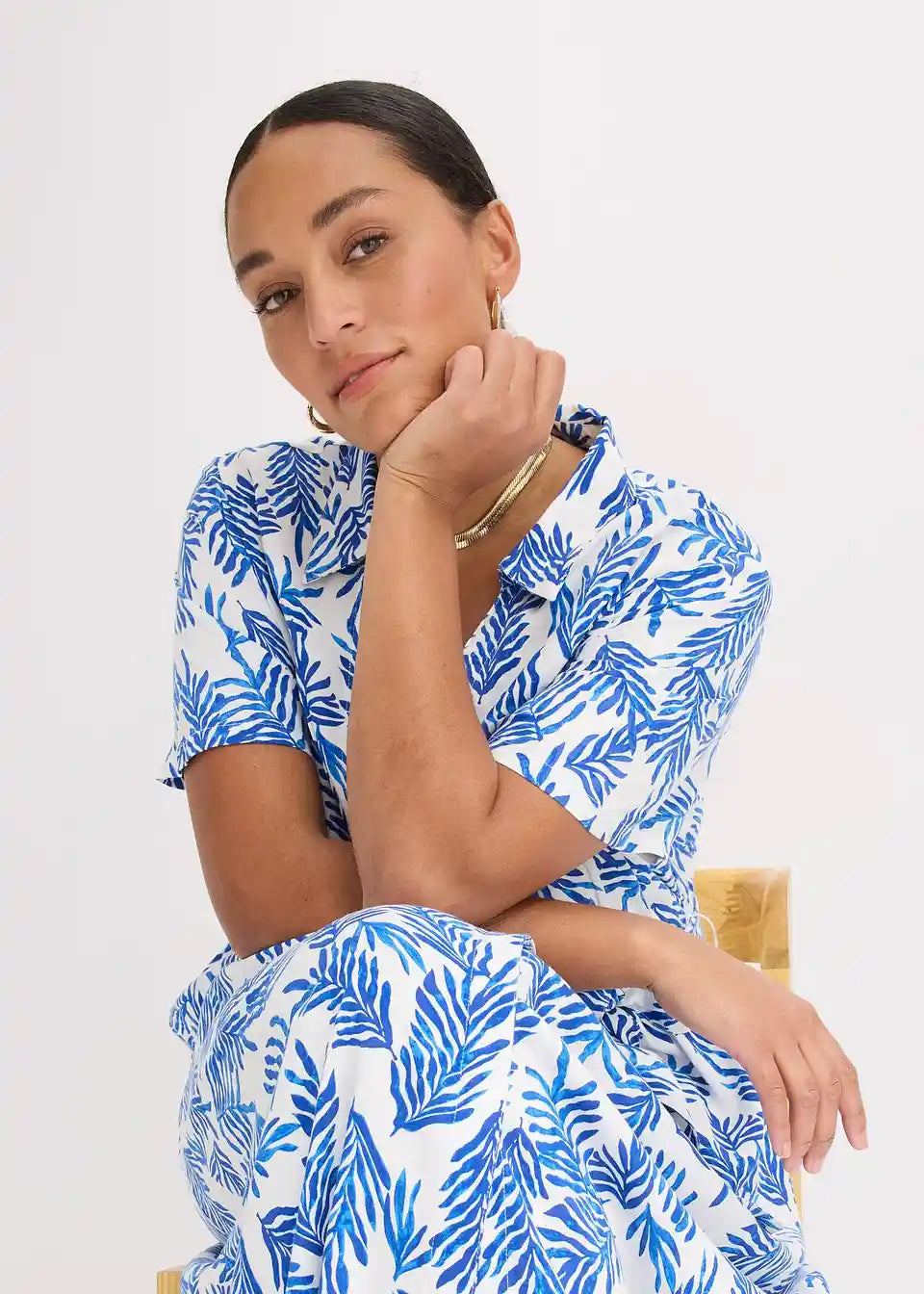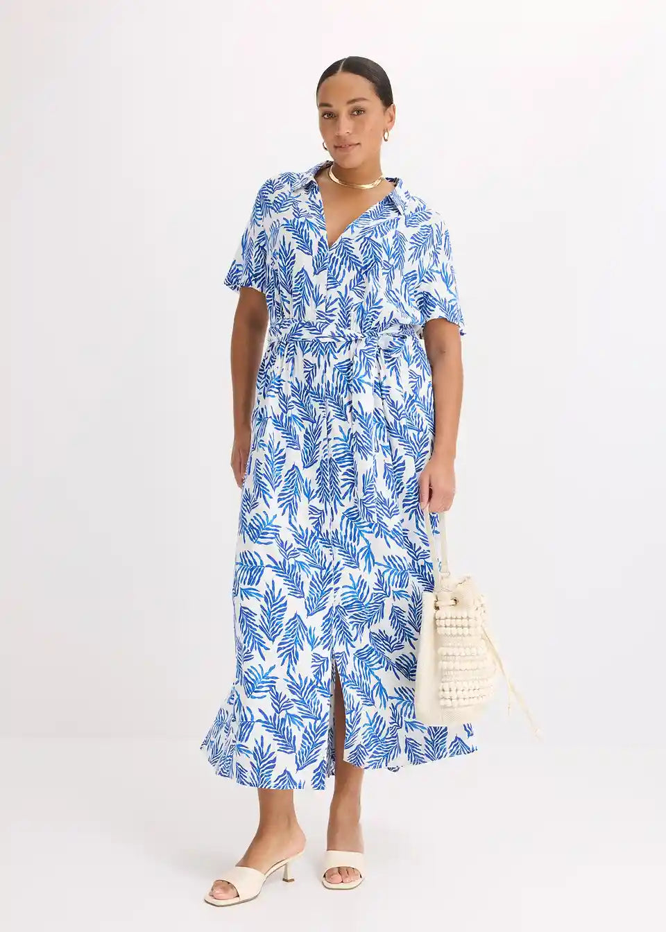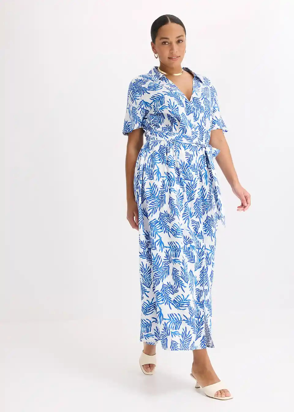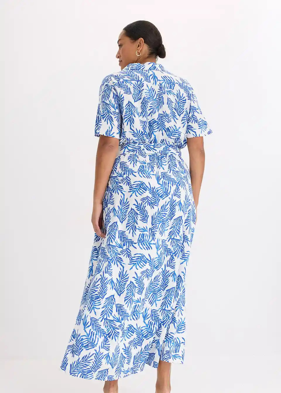 moderna tiskana maksi haljina s kopčanjem na gumbe sprijeda i pojasom u struku