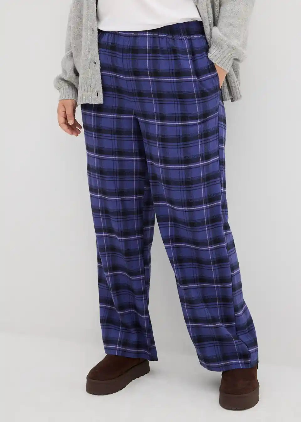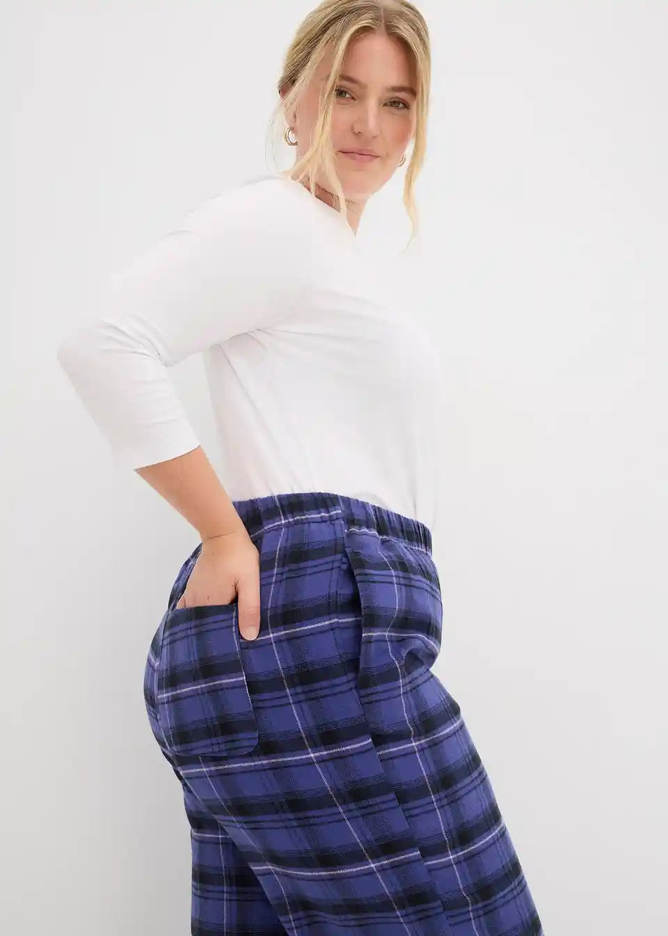 Flanel hlače s visokim, elastičnim pojasom i bočnim džepovima.