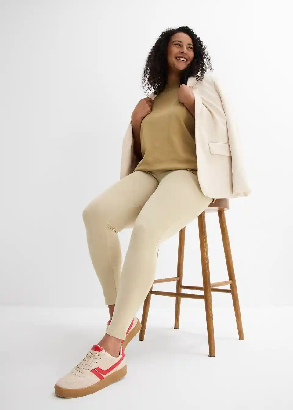 Leggings su neophodan modni dodatak za razne izglede zbog svoje svestranosti. Ove rastezljive leggings od bpc dolaze u praktičnom dvopaku. Sa svojim mekanim rastezljivim materijalom, figure-prateći leggings su prilagodljivi i odgovaraju klasičnoj kao i modernoj garderobi. Oni su univerzalni pratitelji uz traper suknju mini duljine ili fluidan slojeviti izgled.Uz razigrane balerinke ili jednostavne cipele na petu, mogu biti idealni za slobodno vrijeme ili šetnju gradom. Elastični pojas i udobna visina struka osiguravaju optimalno pristajanje za svaki oblik tijela.