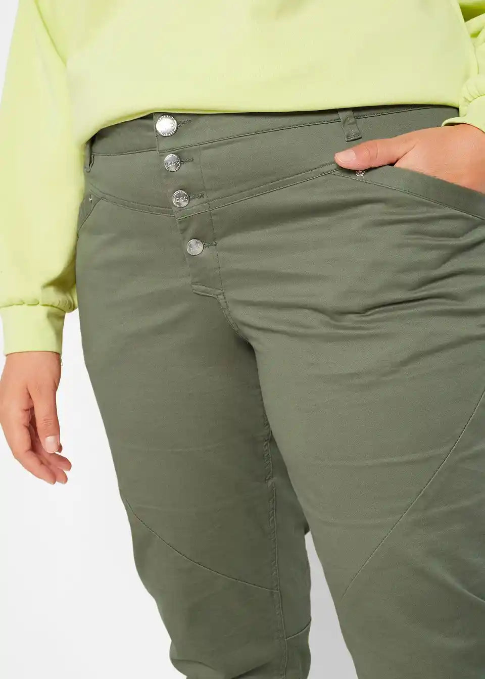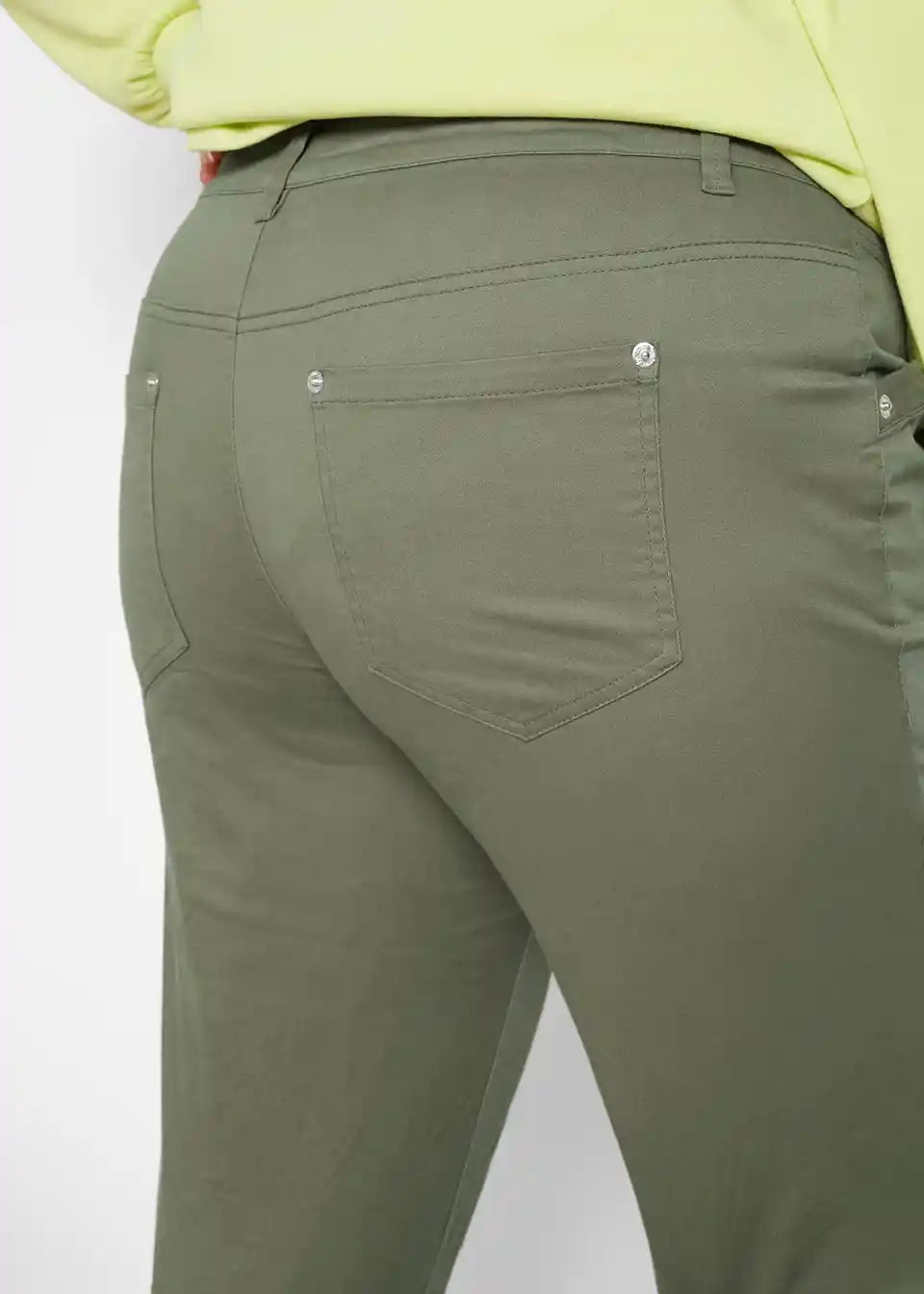 Ove lijepe hlače marke bpc izvrstan su izbor za ležerne kombinacije za slobodno vrijeme. Hlače ravnog kroja izrađene su s ukrasnim šavovima i laganim efektom gužvanja. Ostali detalji uključuju kose prednje džepove i zatvarač s dugim redom gumba. Dizajn je upotpunjen omčama za remen i našivenim stražnjim džepovima. Hlače s efektom gužvanja izrađene od rastezljivog pamuka lako se kombiniraju s raznim gornjim dijelovima za svakodnevnu upotrebu. S podvrnutim nogavicama i nošene uz tenisice izgledaju posebno opušteno.