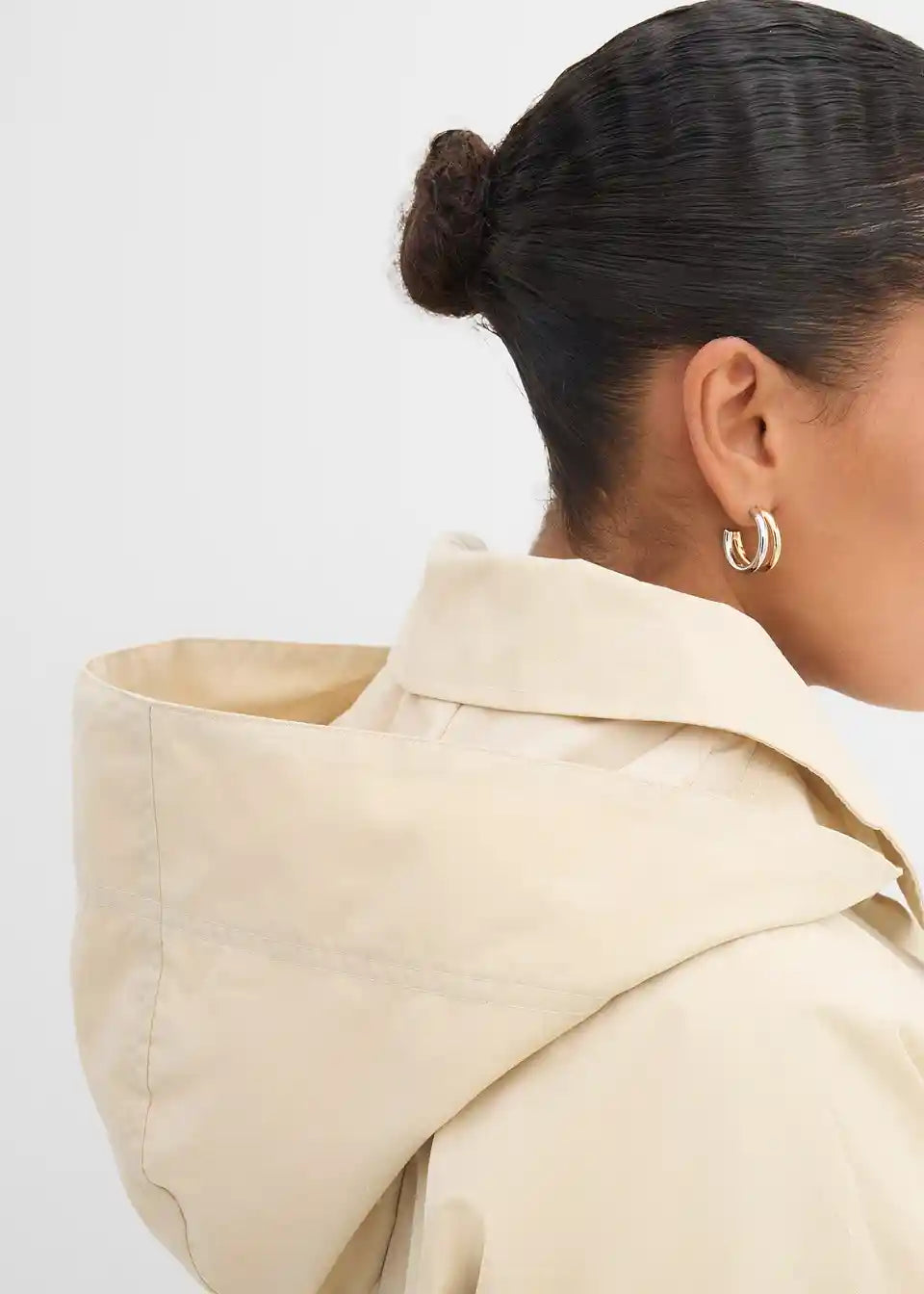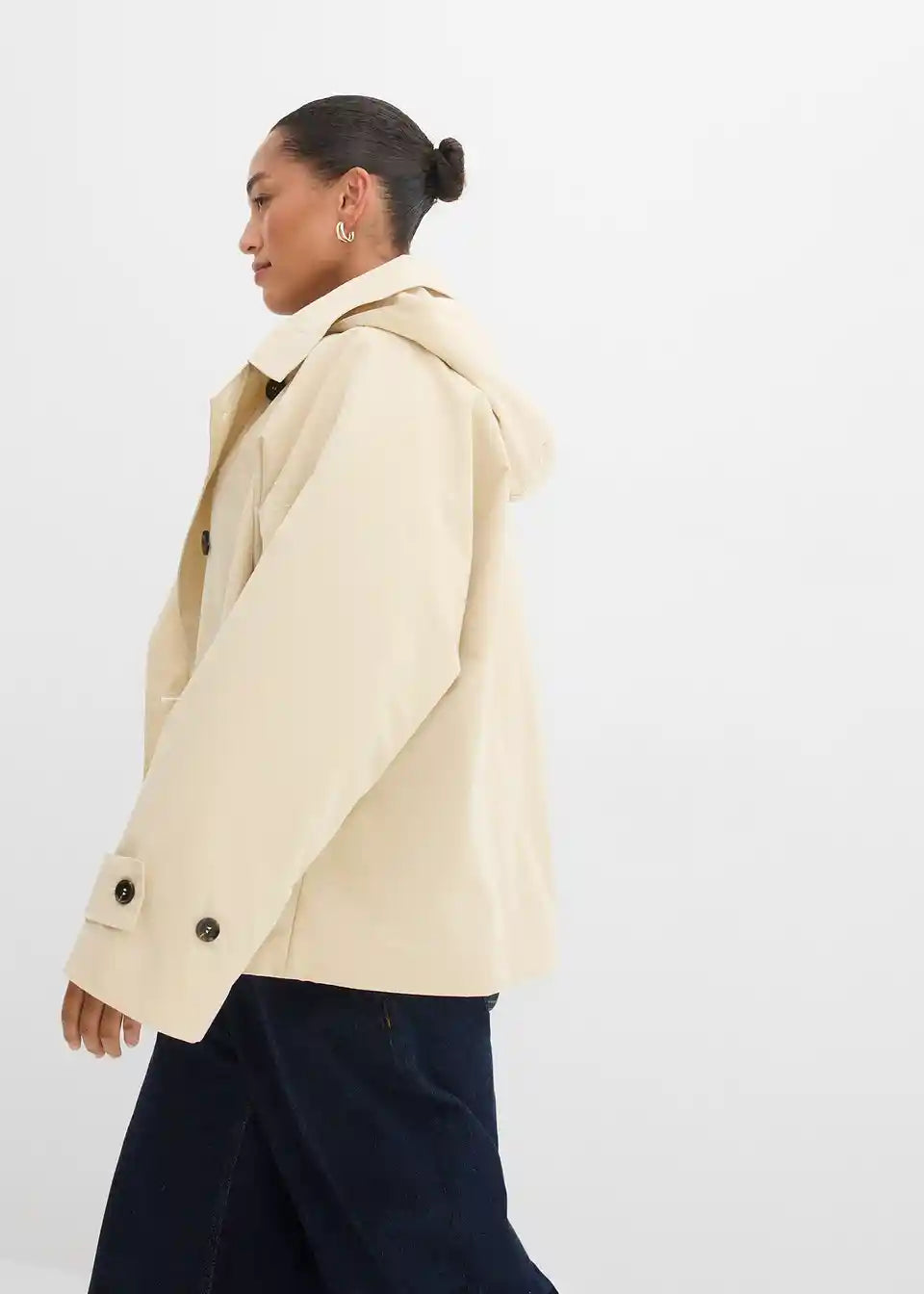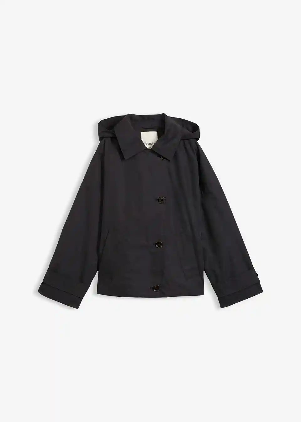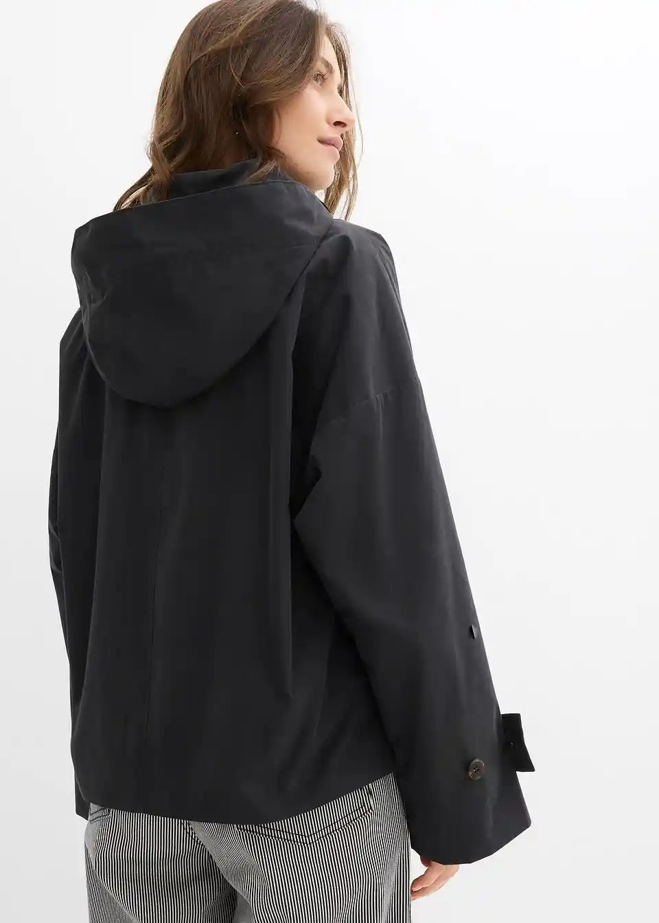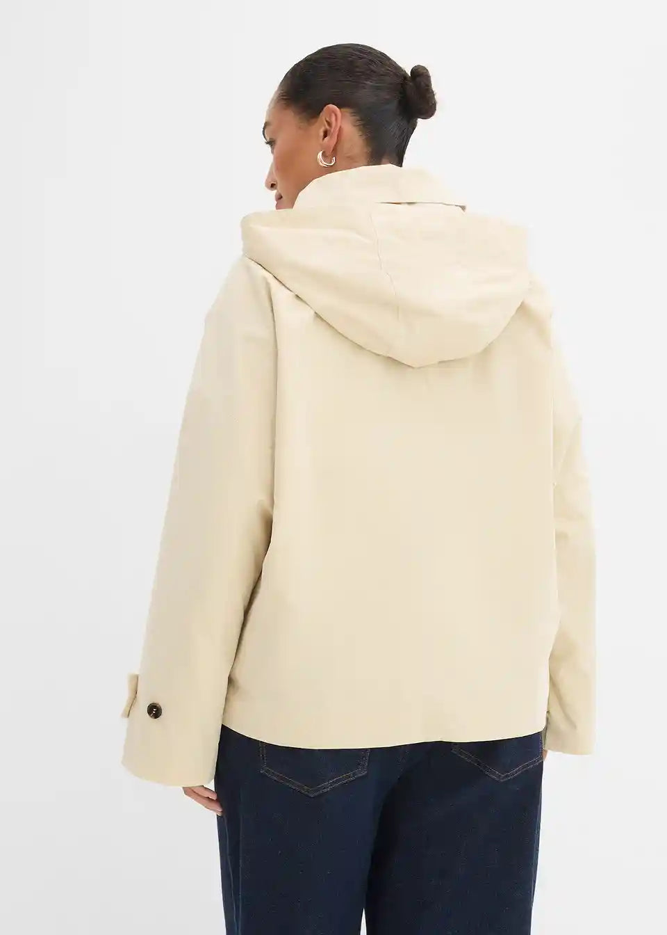 Oversize prijelazna jakna s jednorednim kopčanjem na gumbe i odvojivom kapuljačom
