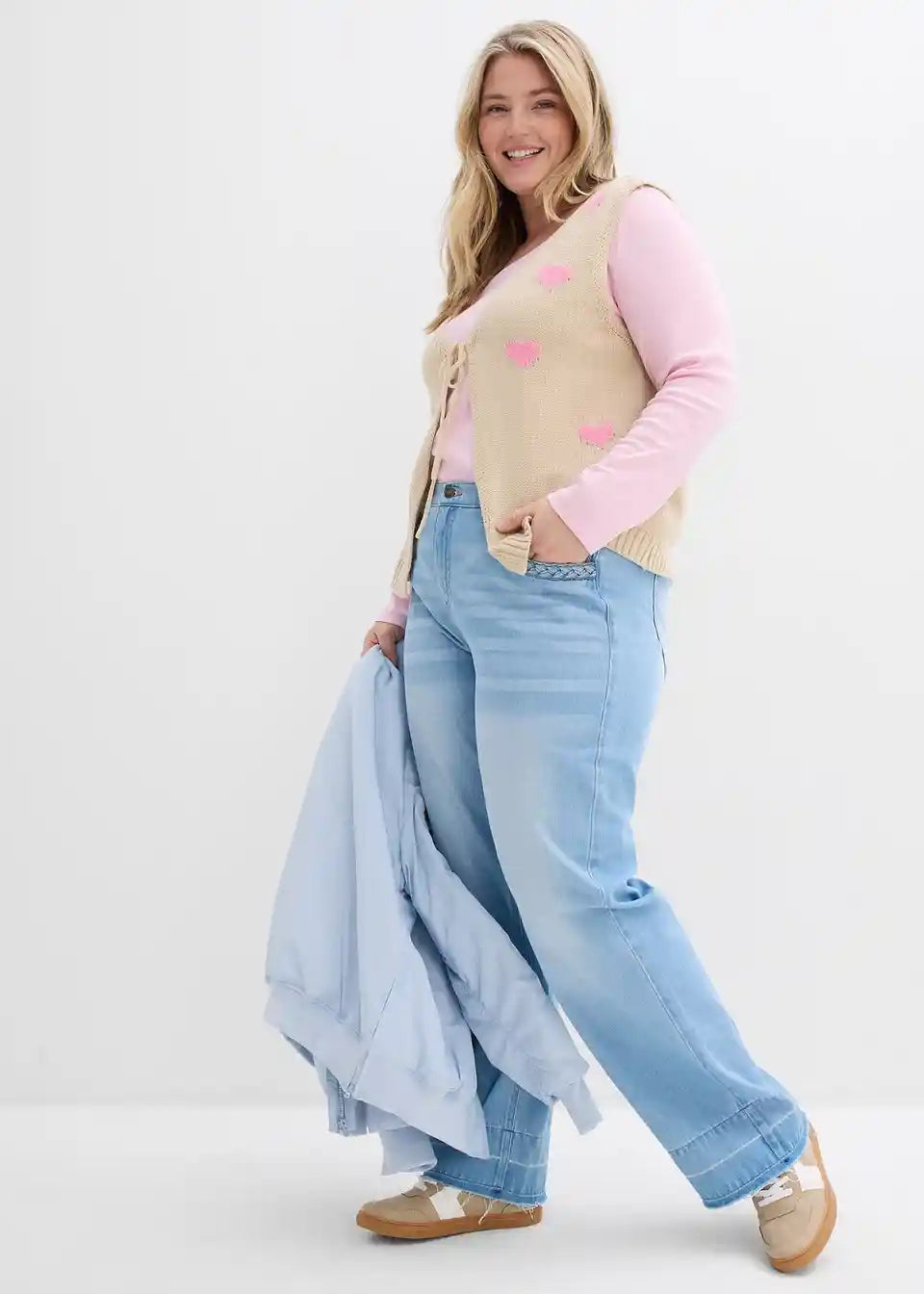 Moderan pleteni prsluk s detaljima srca