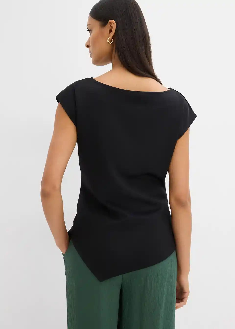 Top bez rukava sa bočnim drapiranim detaljem i asimetričnim porubom.