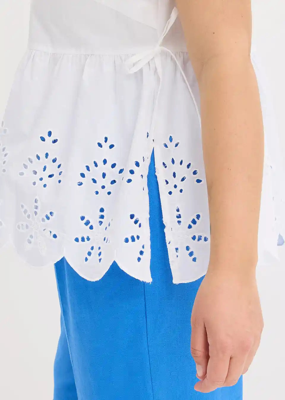 Bluzni top s volanima na rubu i bočnim vezanjem