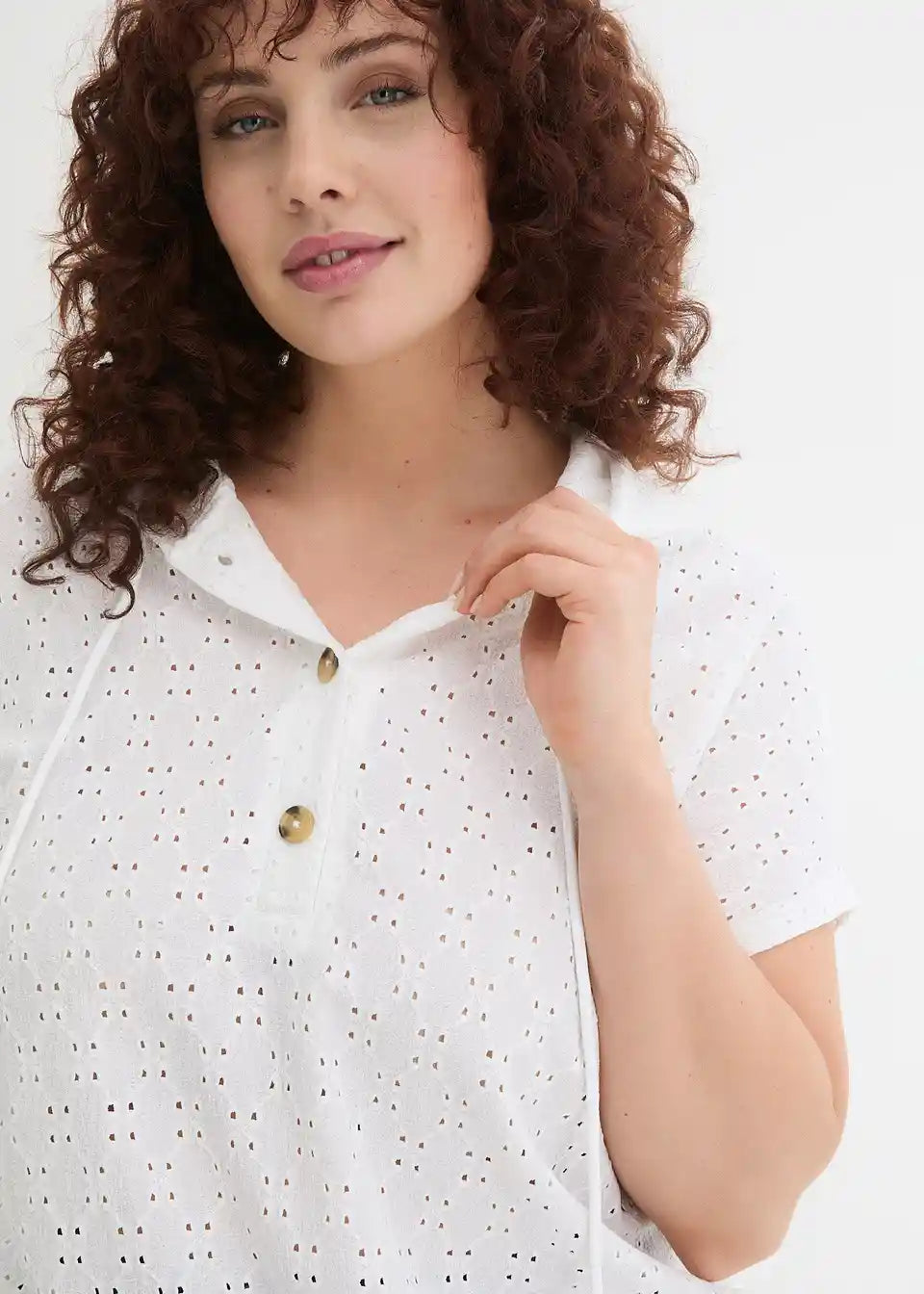 Majica s okruglim izrezom s gumbima i kapuljačom