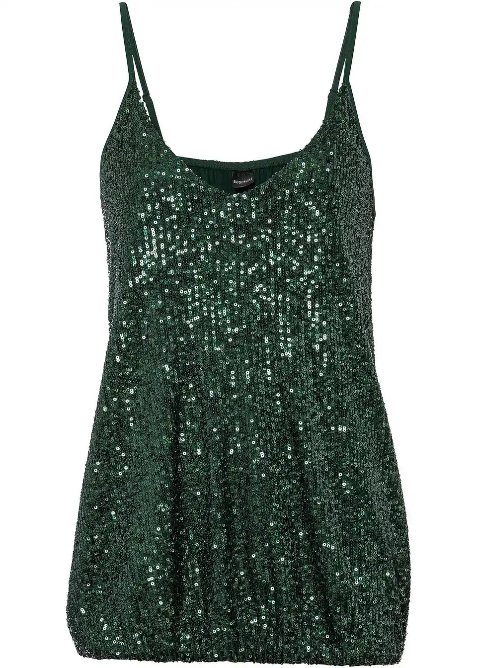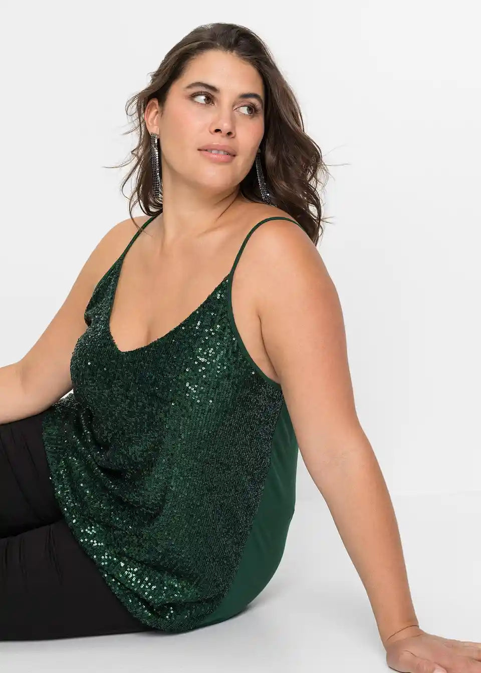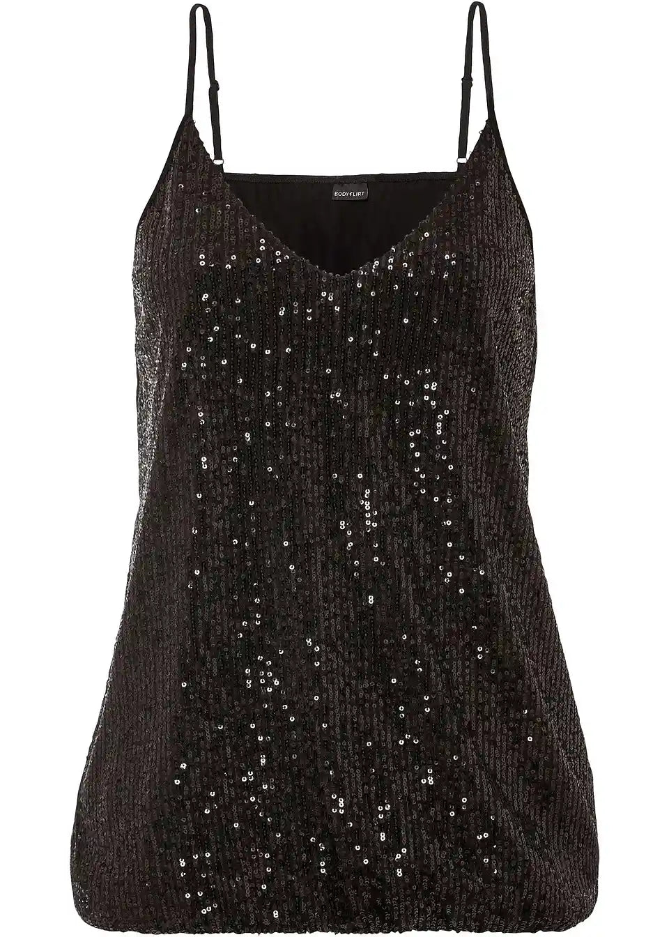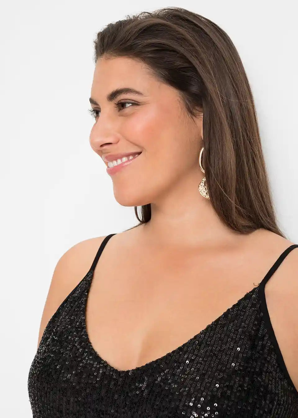 Svečani Jersey Top s Pailletten i privlačnim izrezom.