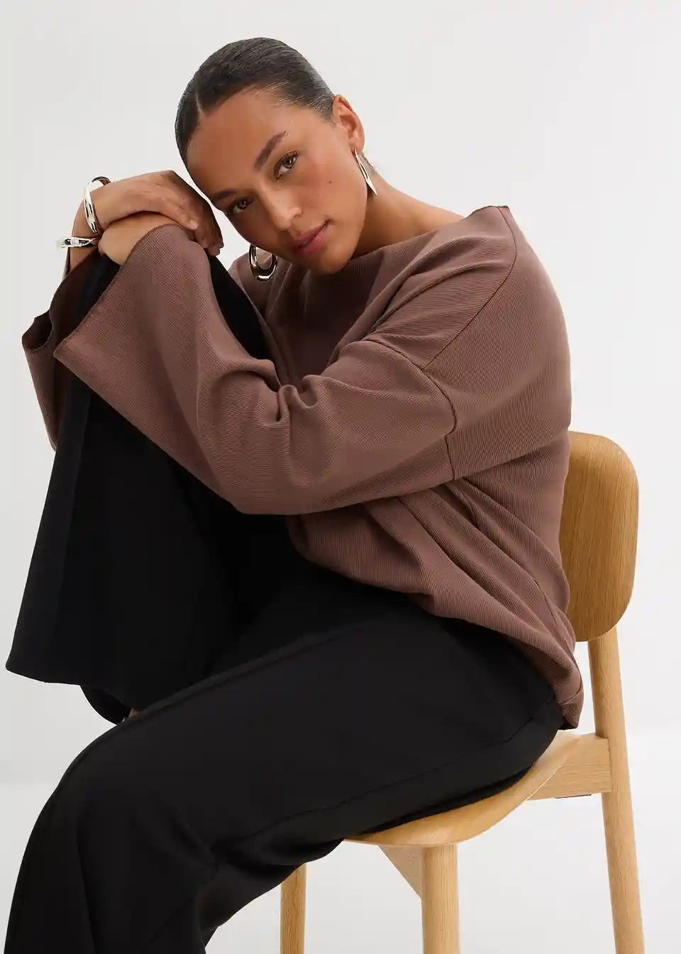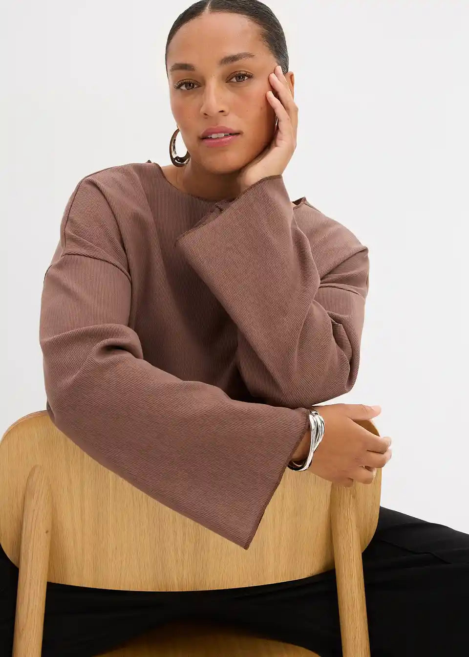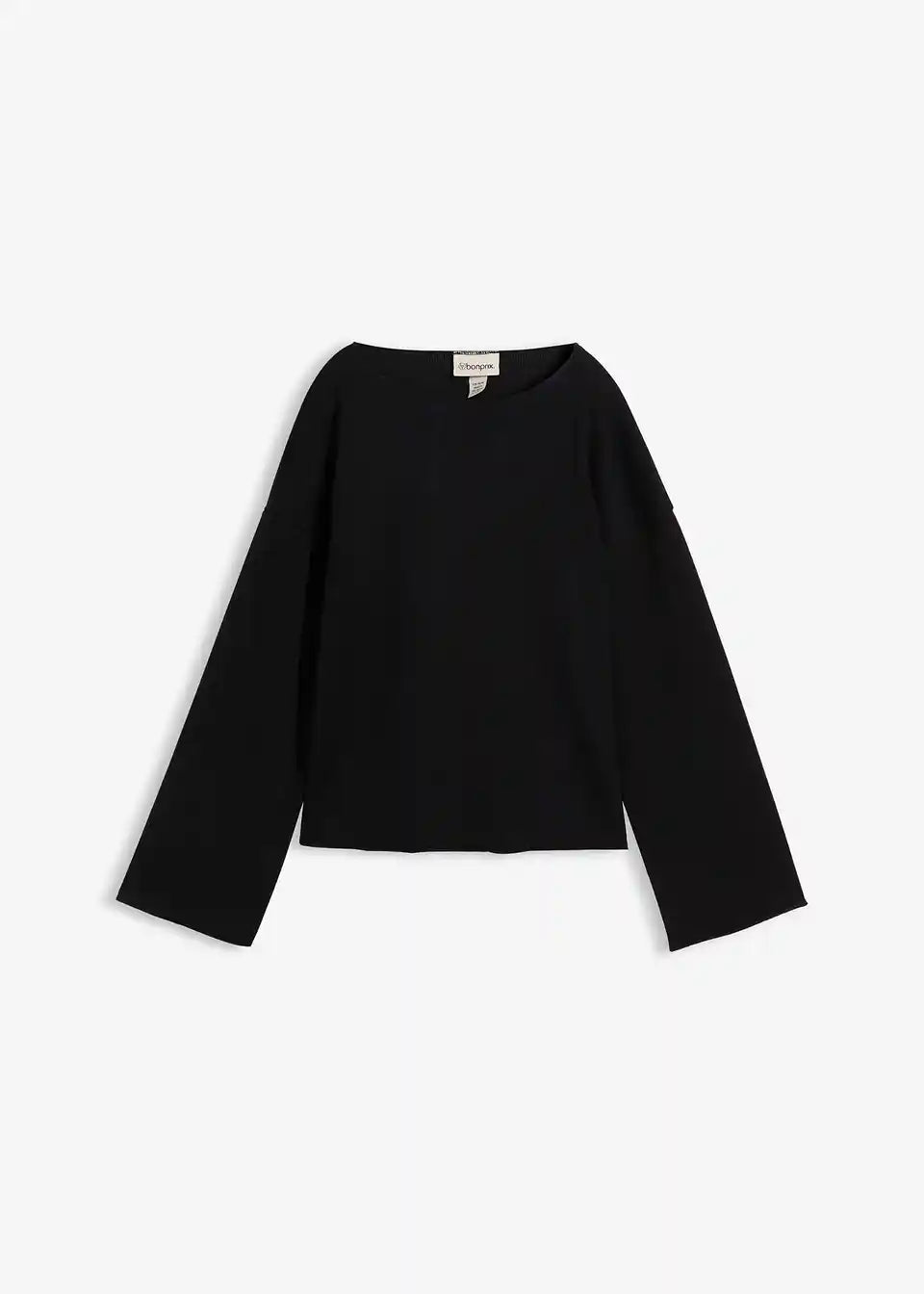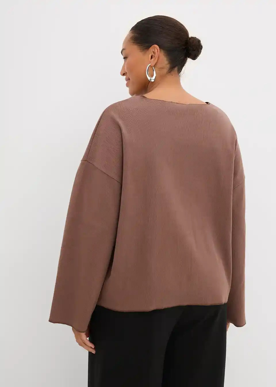 Rebrasta majica s lađa izrezom i dugim rukavima