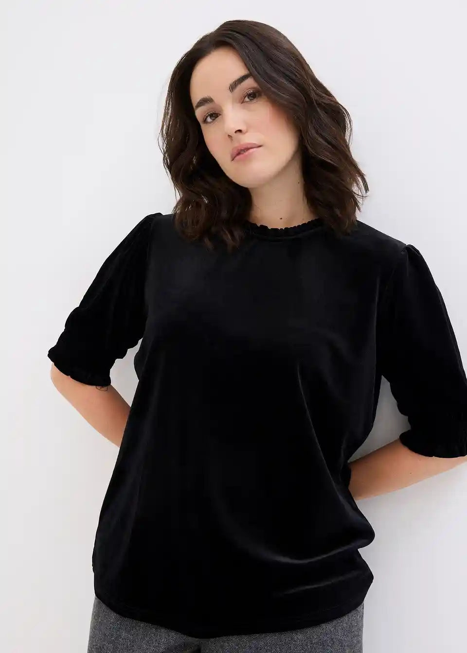 elegantna baršunasta majica s gumbom od kristalića