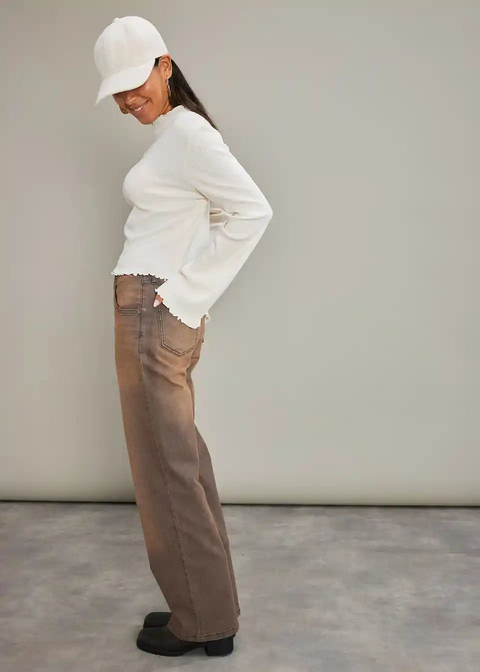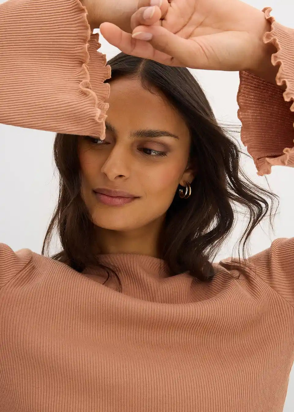 Fina majica od rebraste čiste pamuka s trumpet rukavima