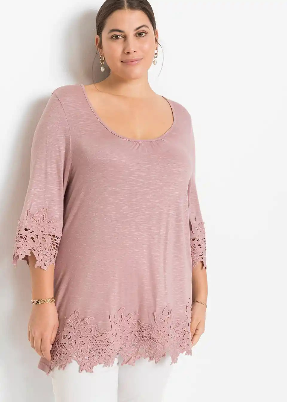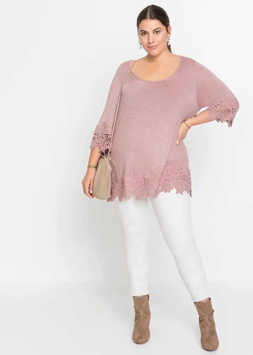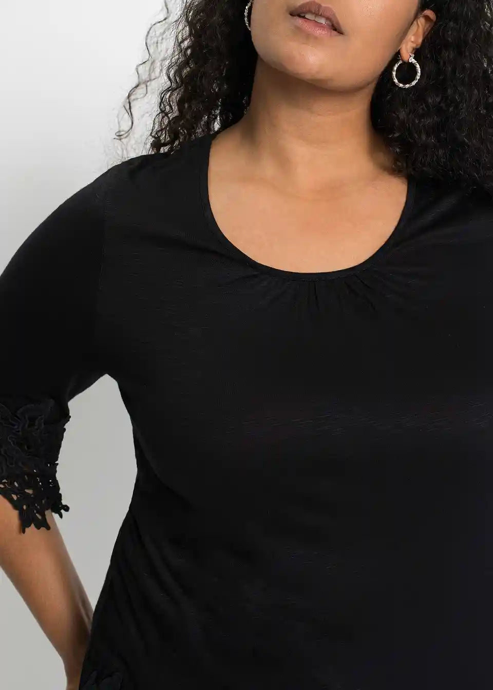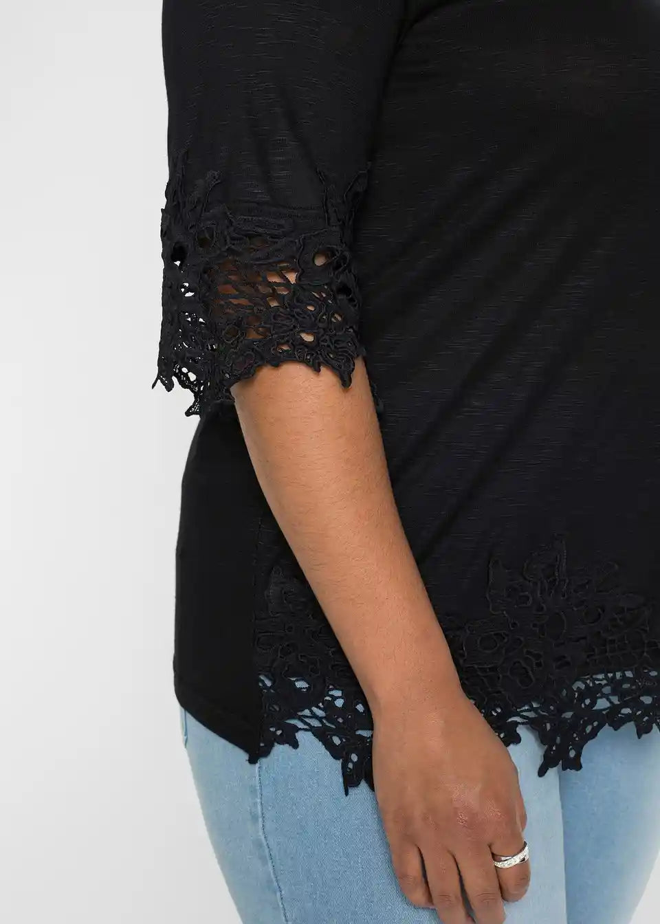 Ljetna majica od BODYFLIRT. Majica je ukrašena čipkom na rukavima i porubu. Duljina u vel. 36/38 cca. 68 cm.