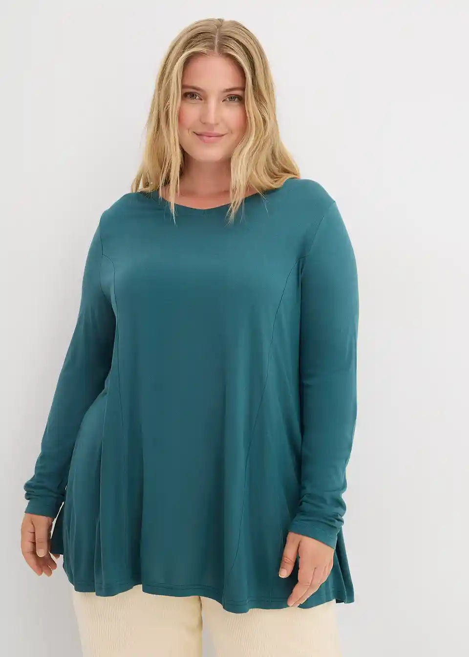 Majica s dugim rukavima opuštenog kroja s visokim V-izrezom od viskoze
