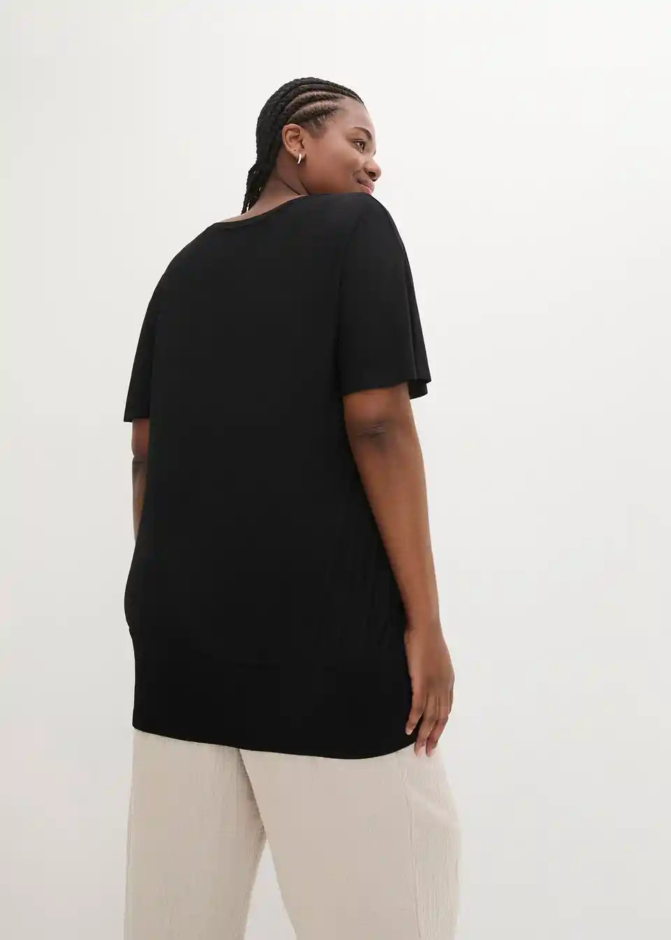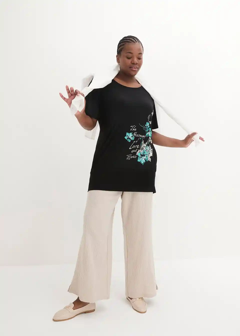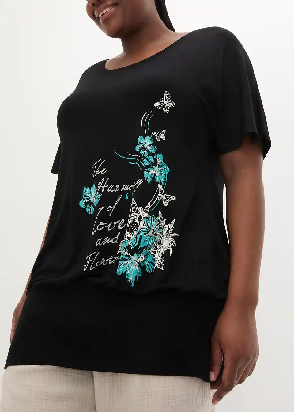 Udobno krojena majica s lađa izrezom, prekrasnim printom i širokim pojasom na rubu