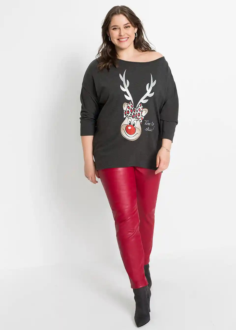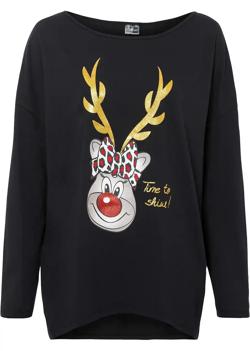 Majica s otvorenim ramenima i božićnim motivom