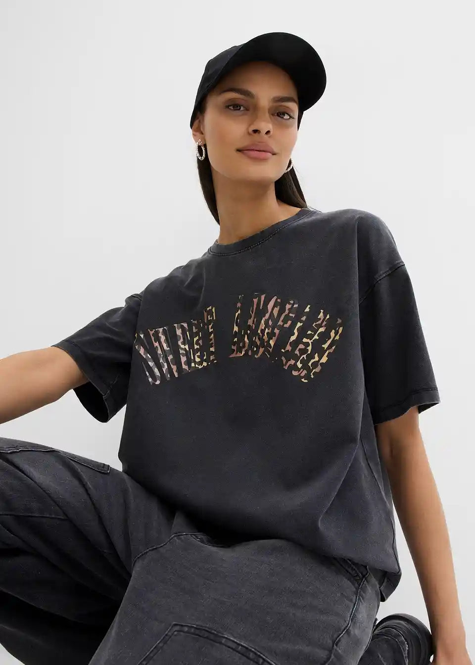 Ležerna Oversized T-Shirt majica s Leo natpisom i laganim ispranim efektom