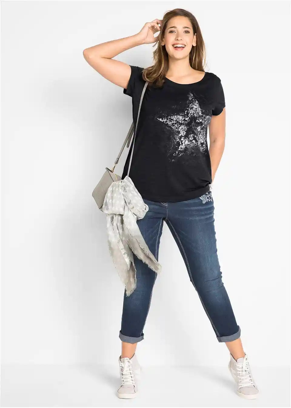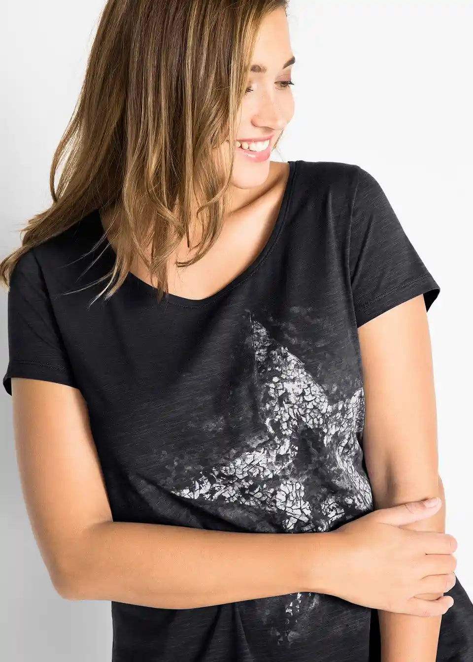 Ova moderna majica od mekano lepršavog Flammgarna ima sve što je potrebno da postane vaš omiljeni komad. Majica vizualno oduševljava velikim printom sprijeda. Dolazi s jednostavnim okruglim izrezom, kratkim rukavima i lagano zaobljenim rubom. Ležerna majica brenda bpc savršeno pristaje na kratke i duge traperice.