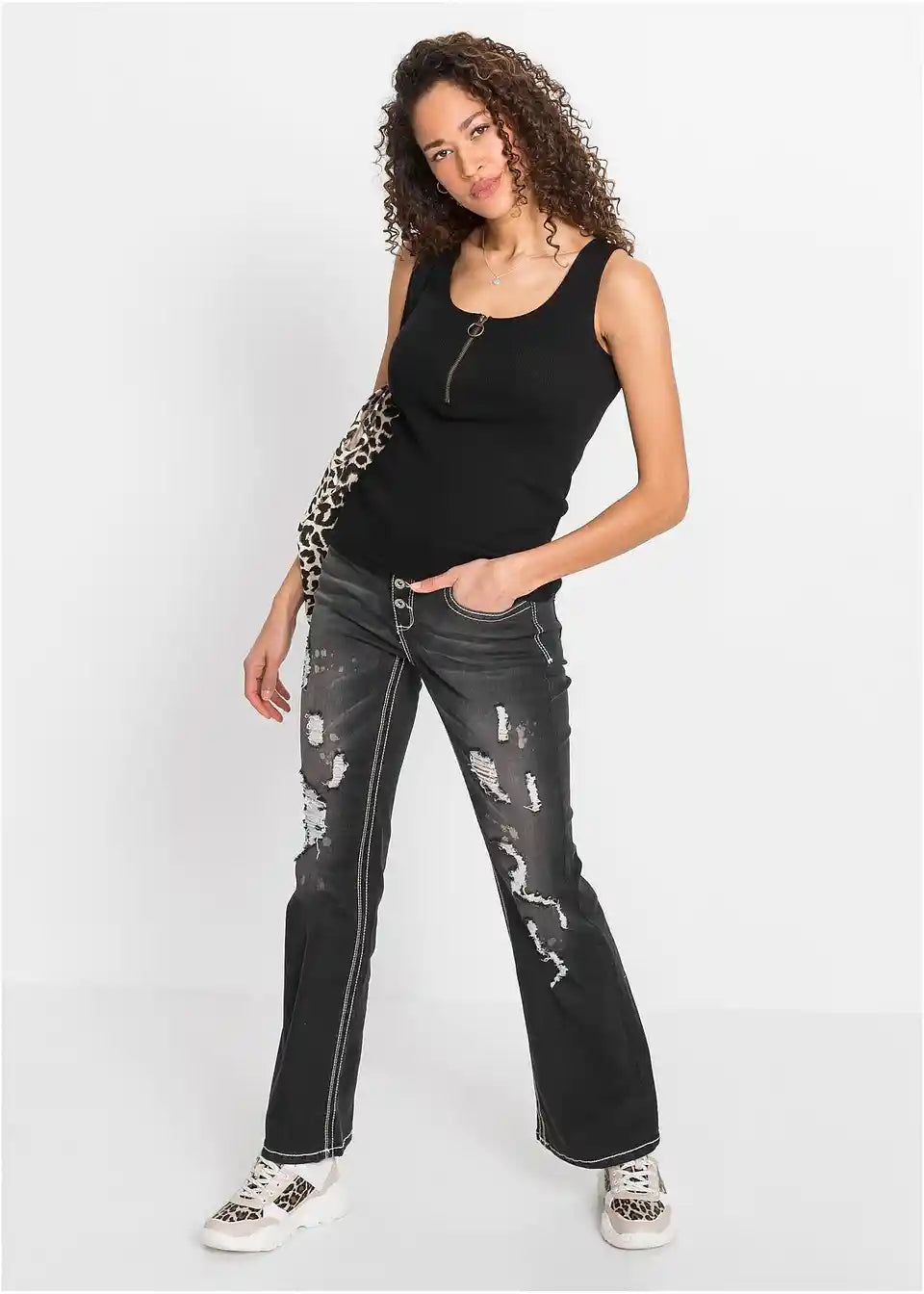Opušteni sportski izgled ovog topa izrađenog od čistog pamuka. Mekani gornji dio ističe se modernom rebrastom strukturom i vrlo dubokim okruglim izrezom. On dolazi do izražaja zahvaljujući modernom patentnom zatvaraču koji se može dodatno otvoriti. U kombinaciji s kratkim hlačama i suknjama, ovaj ležerni rebrasti top s patentnim zatvaračem izgleda odlično.