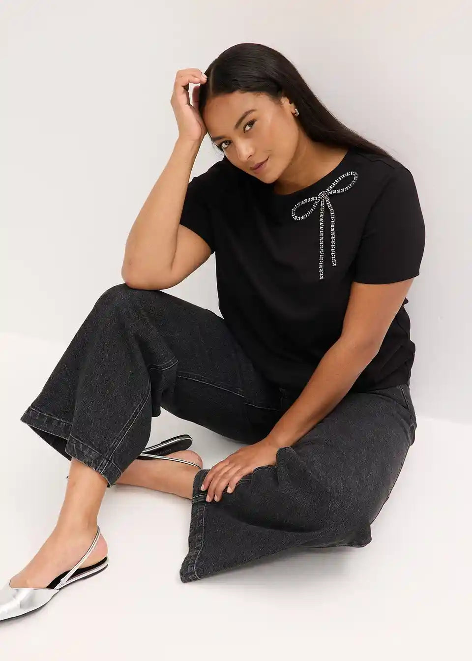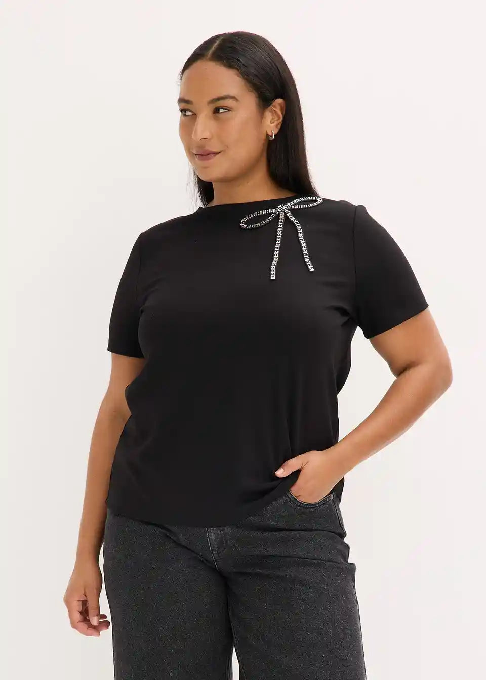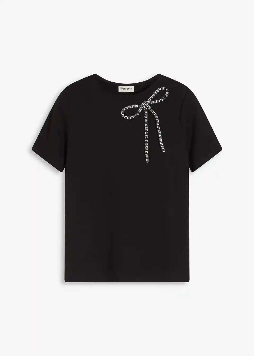 moderna majica od čvrstog Punto materijala s dekorativnom Strass mašnom sprijeda
