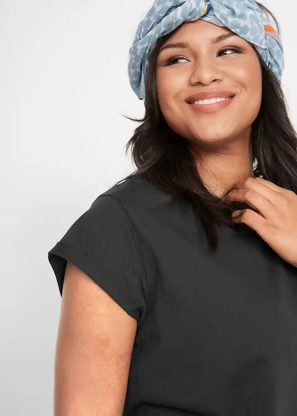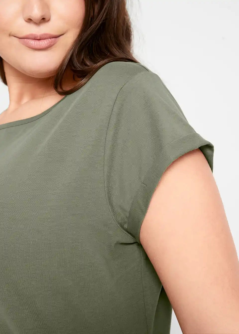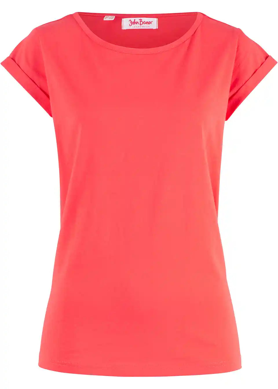 Modni T-Shirt kratkih rukava marke John Baner je upečatljiv osnovni komad za modno osviještene žene. Kul boxy kroj privlači pažnju dok istovremeno laskavo pristaje oblinama. Vrlo udoban T-Shirt s okruglim izrezom dodatno je ukrašen atraktivnim zavrtnjem na rukavima. Osobito je lijep u kombinaciji s jednostavnim trapericama i balerinkama.