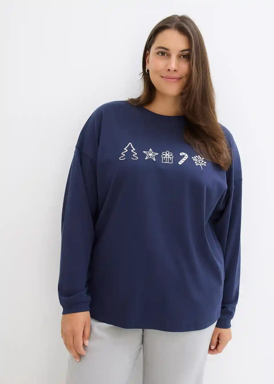 Božićna majica s vezom i dugim rukavima oversize kroja