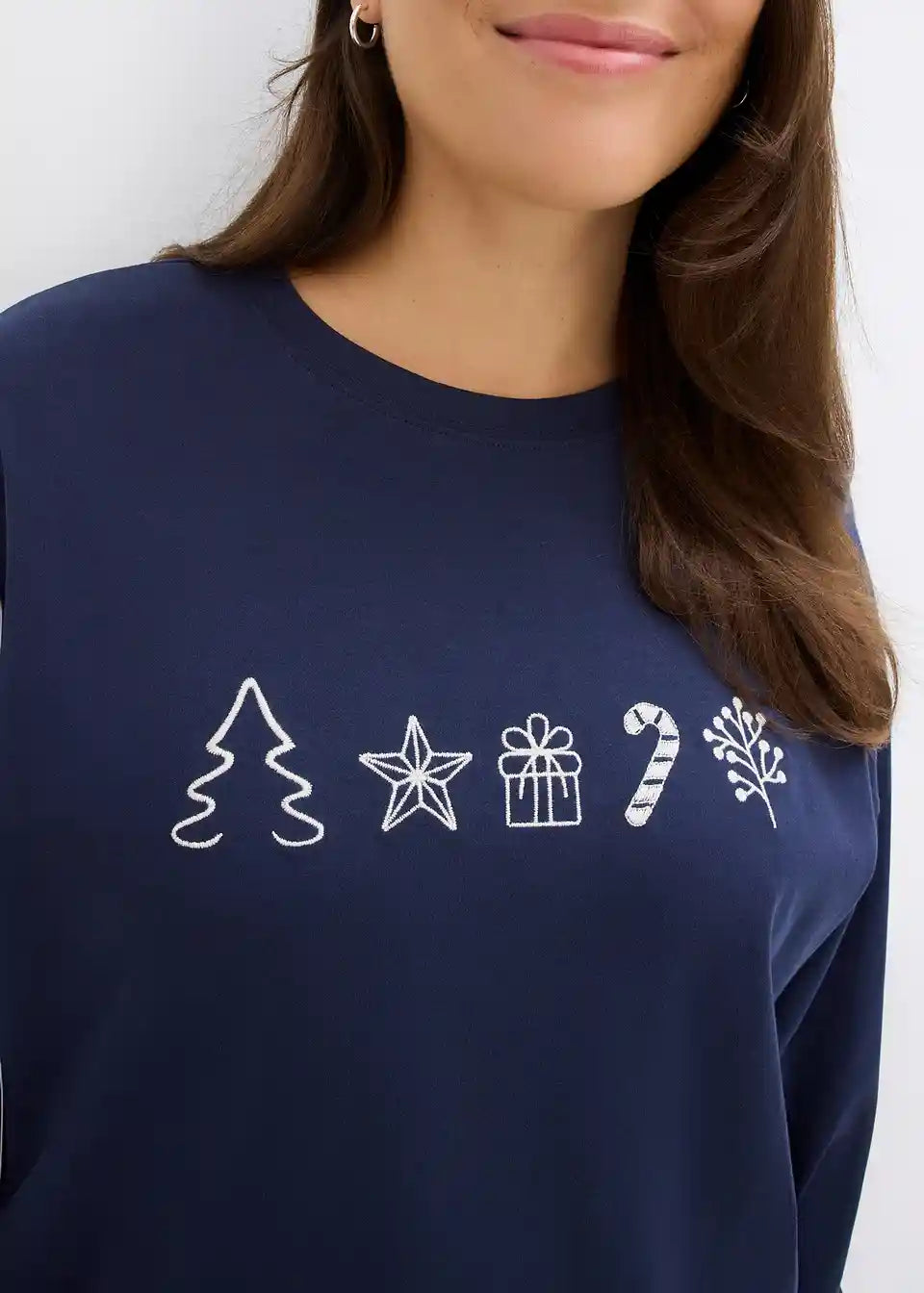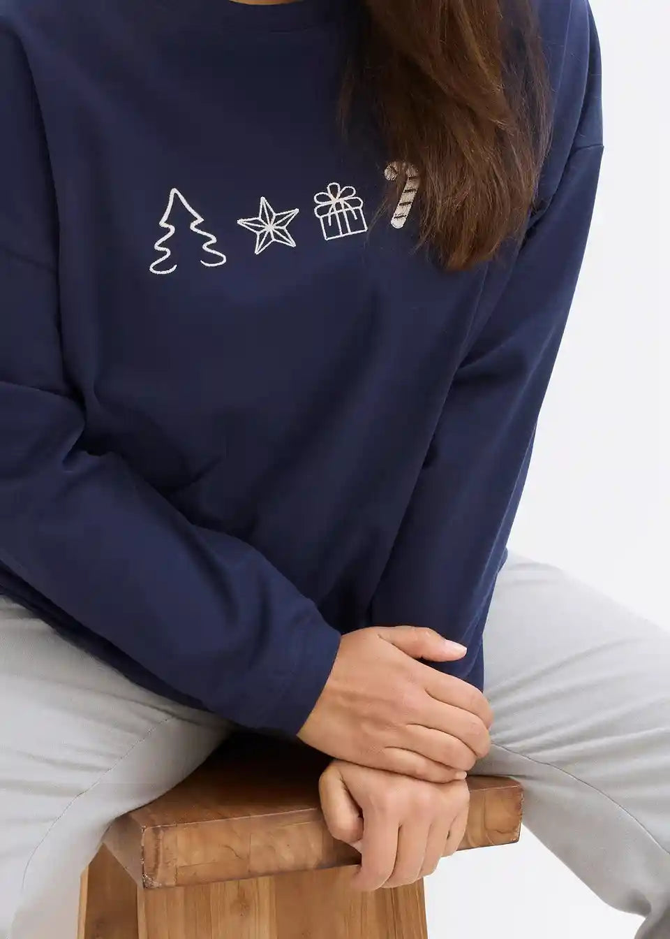 Ležerno krojena dugorukavna majica s božićnim vezom