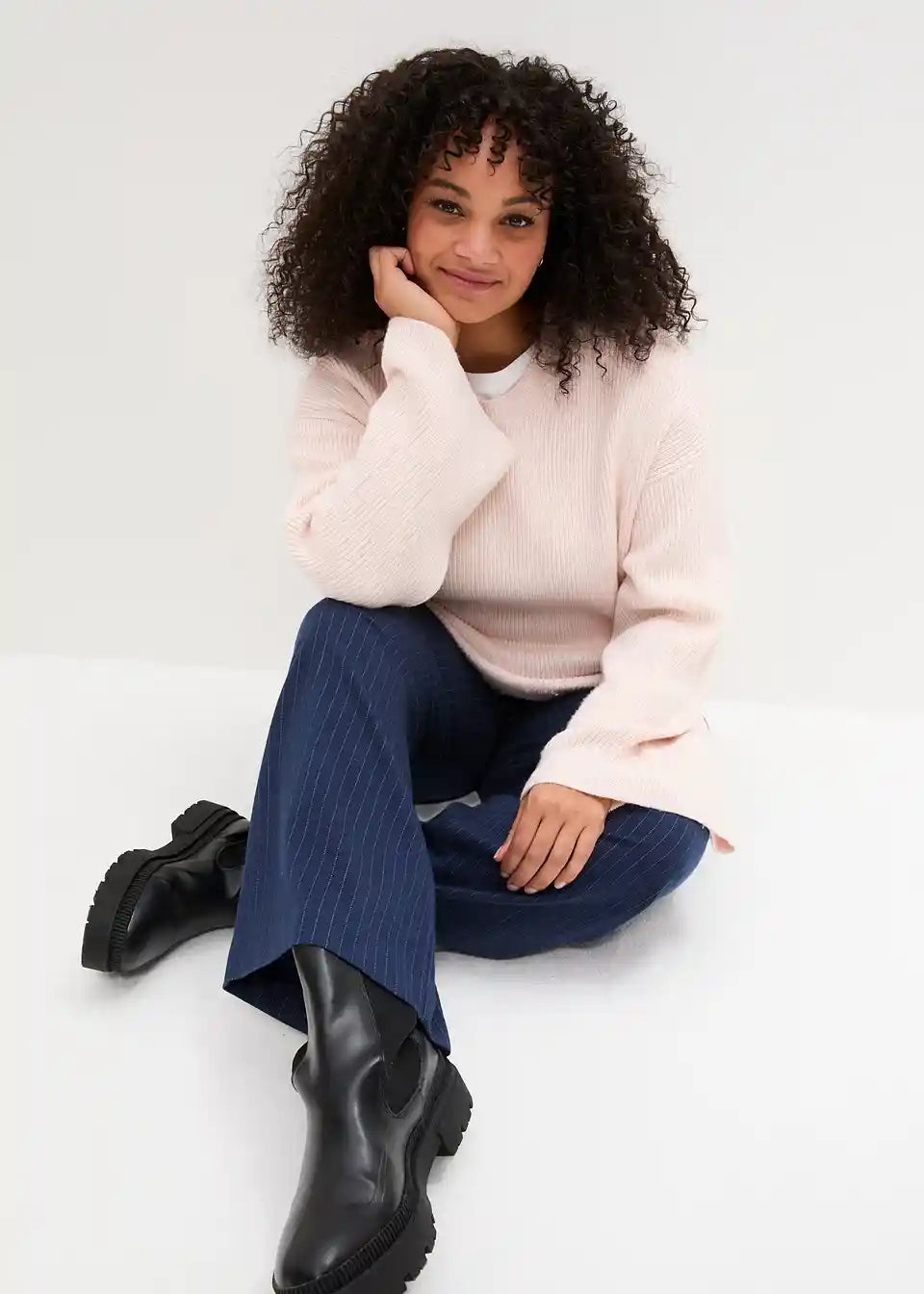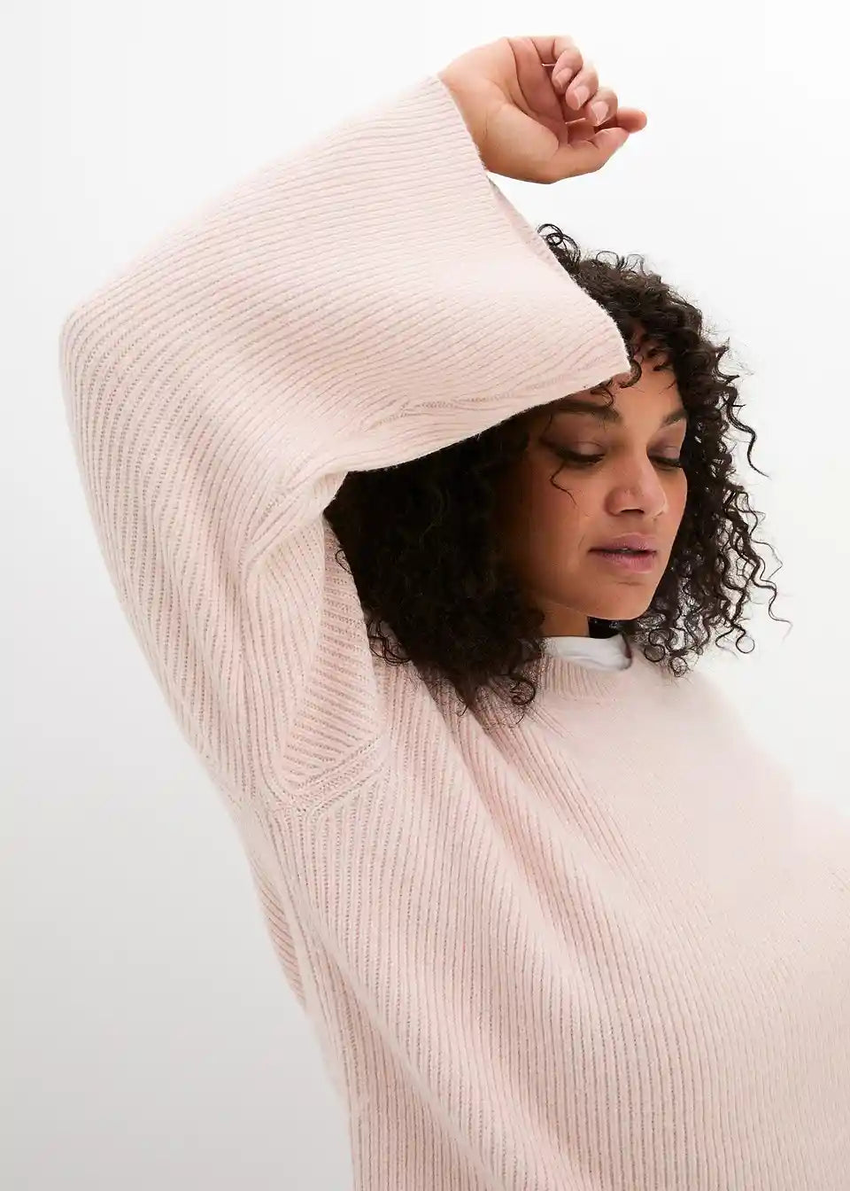 Boxy-pulover koji laska figuri, izrađen od fine rebraste pletenine