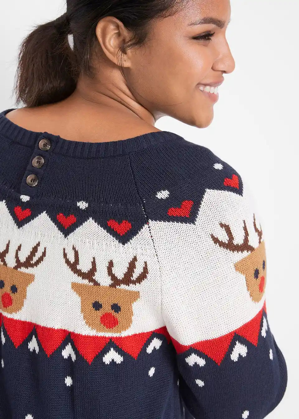 Božićni pulover s motivom jelena i detaljima s gumbima