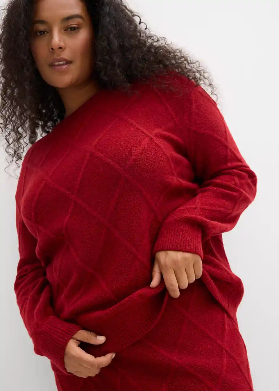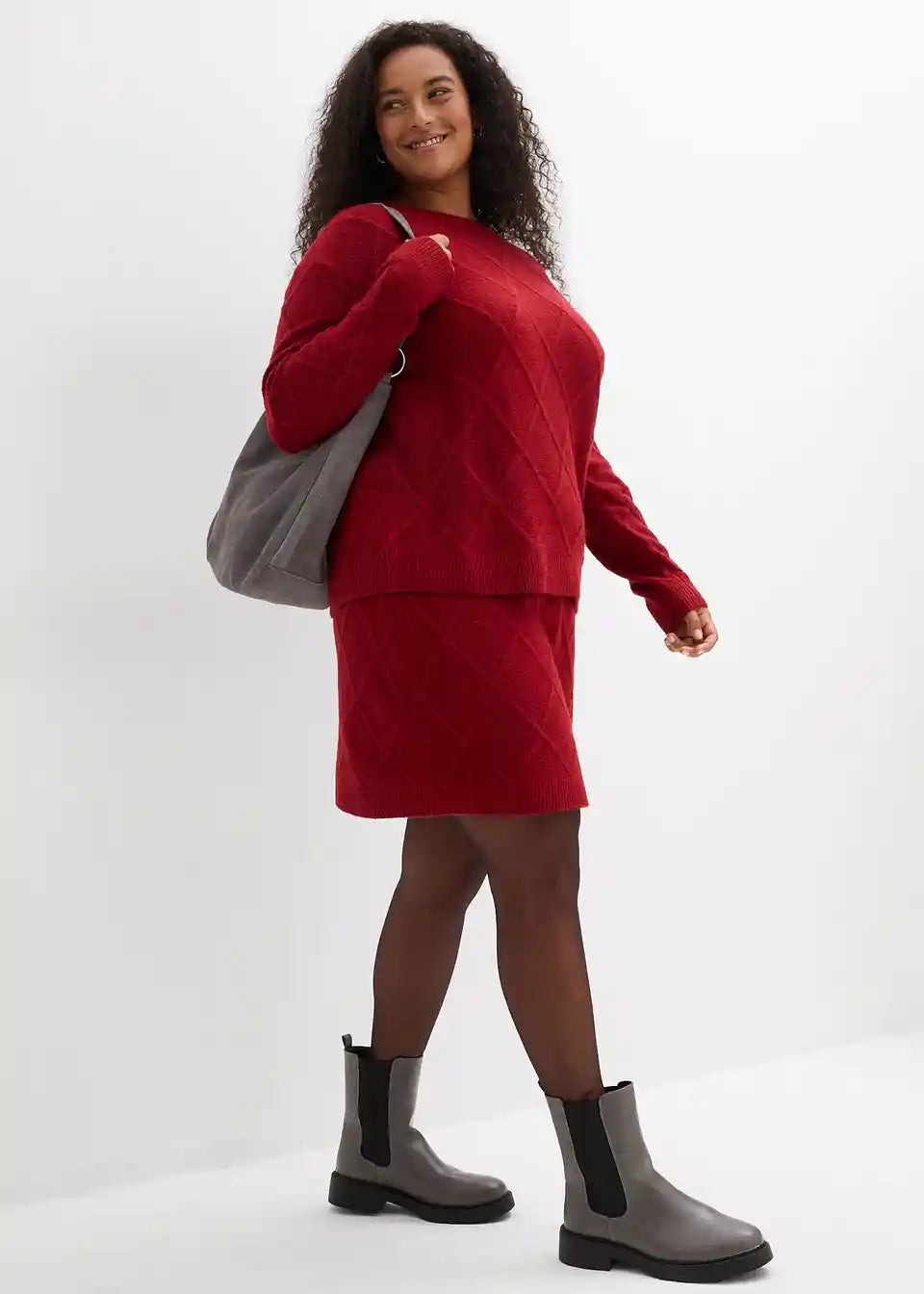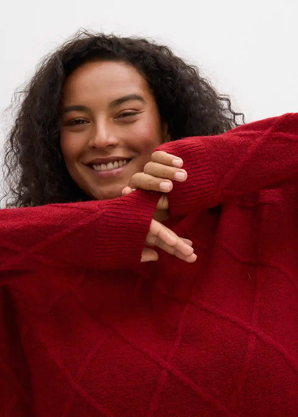 Ležeran oversize pulover s cable uzorkom. Model s okruglim izrezom i spuštenim ramenima.