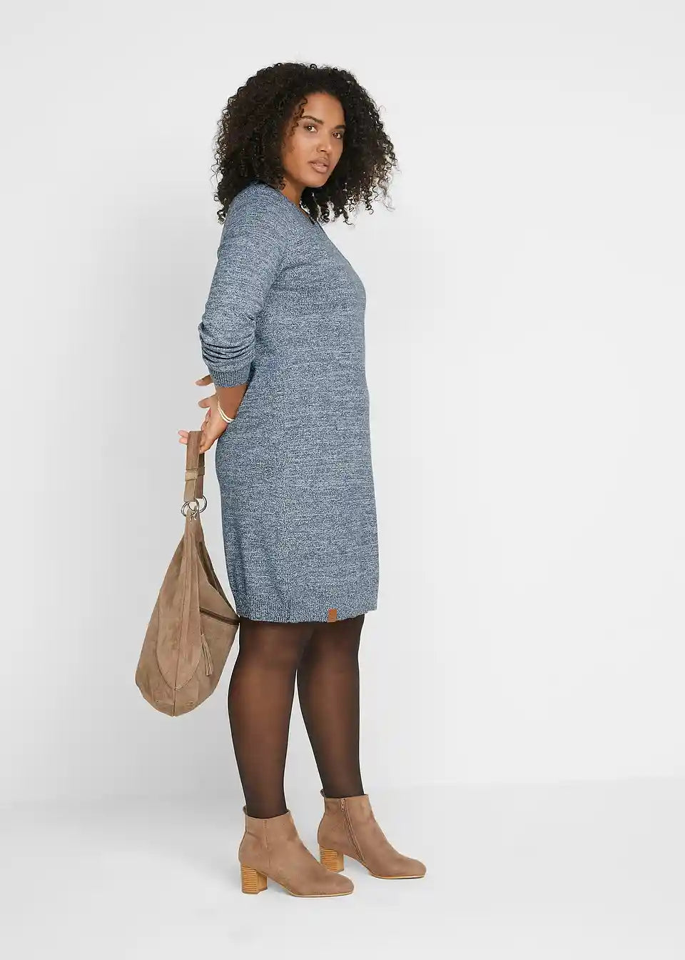 Pletena haljina s detaljima od imitacije kože