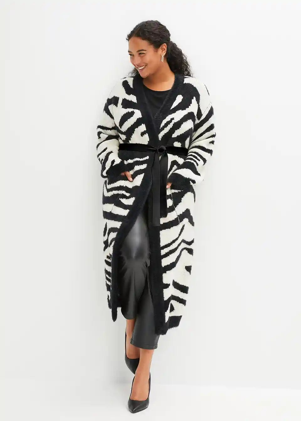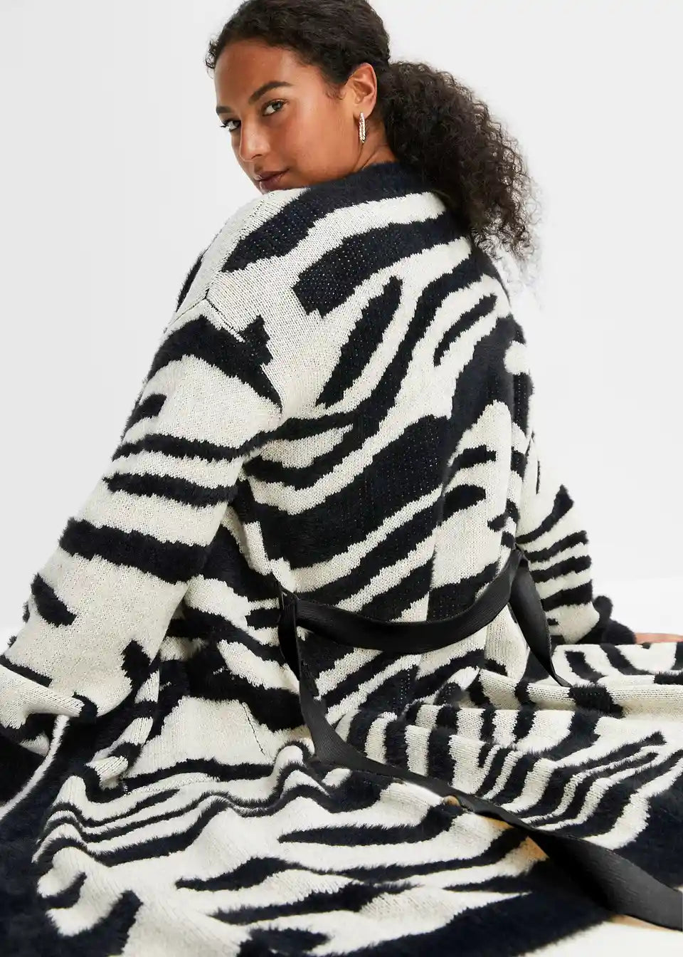 Dugi pleteni kaput s modernim uzorkom