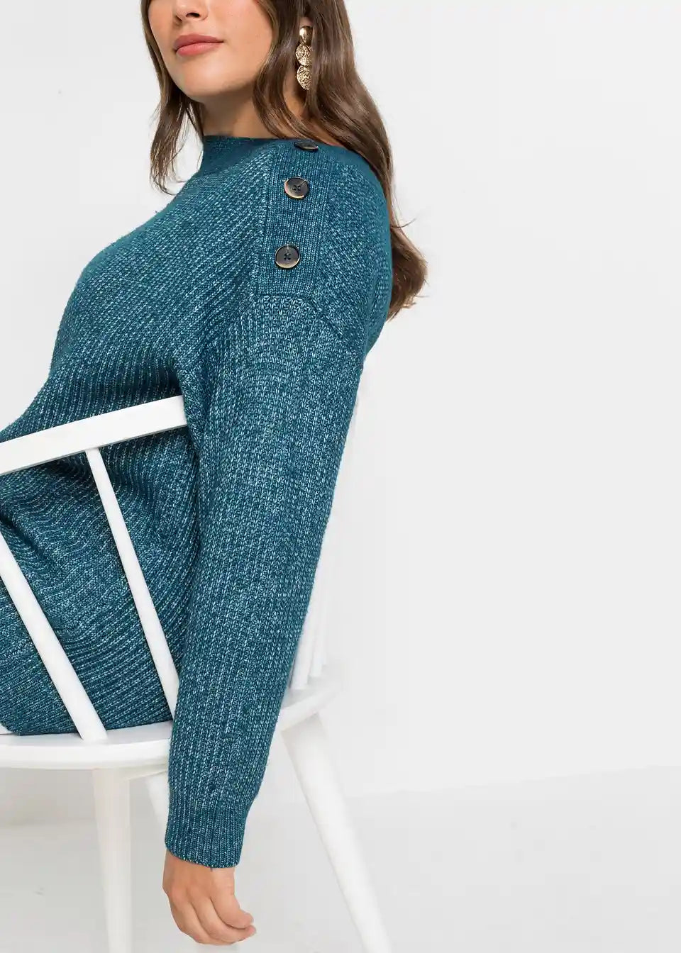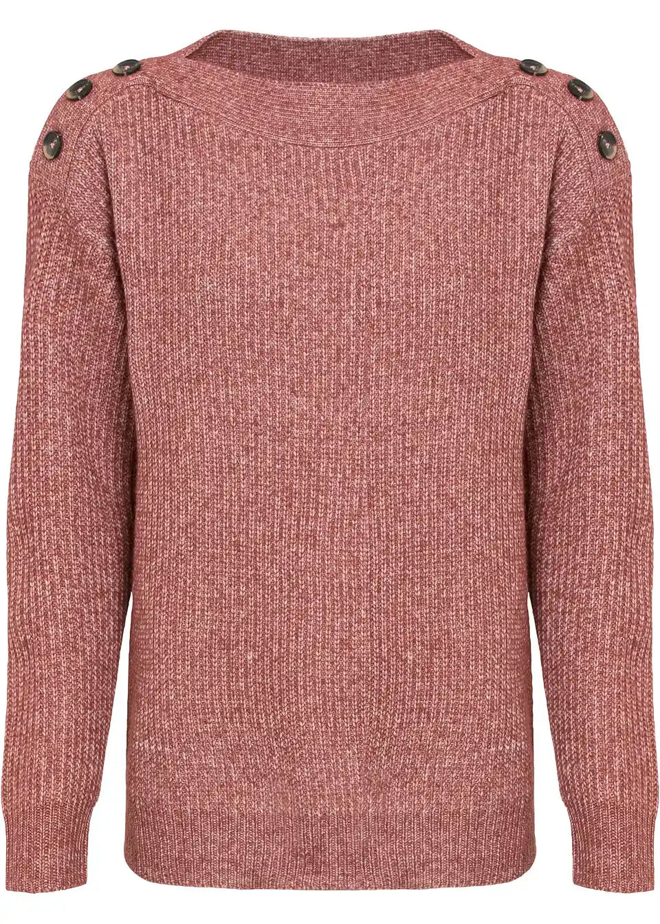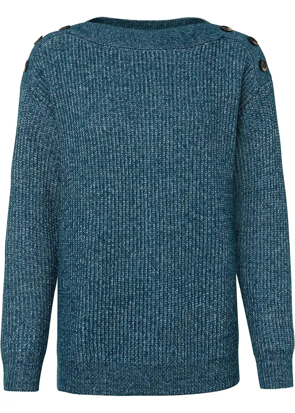 Lijep pulover s gumbima od Bodyflirt-a. Pulover ima izrez u obliku čamca, ukrašen gumbima na kraju. Optička duljina u vel. 36/38 cca. 64 cm.