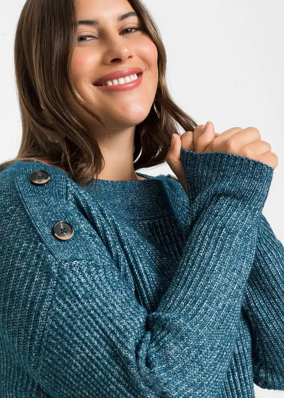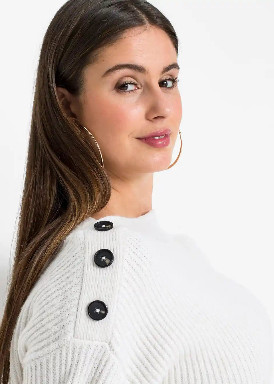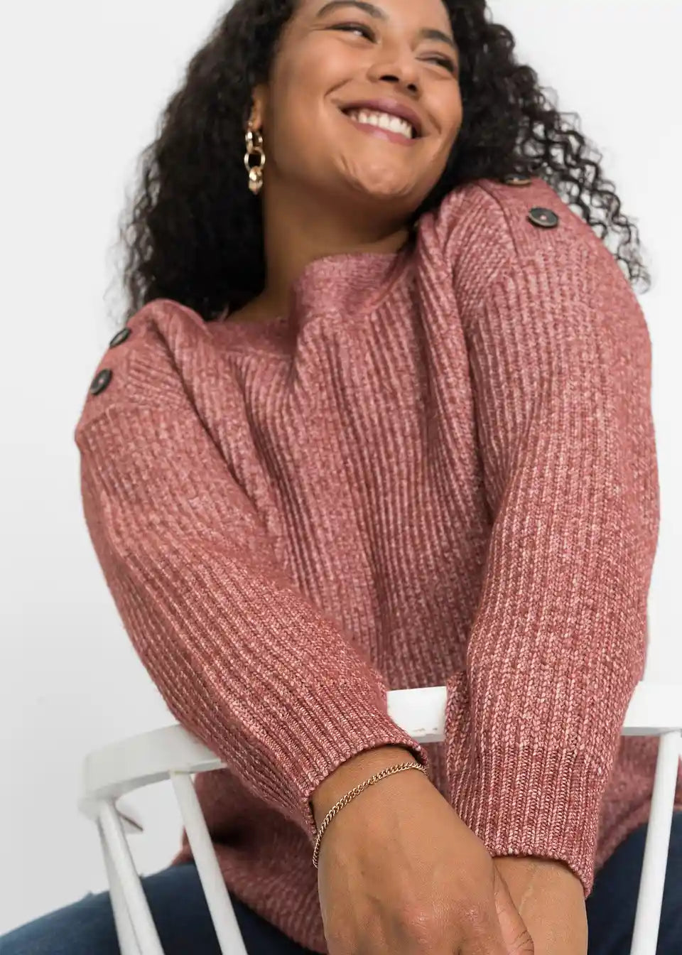 Lijep pulover s gumbima od Bodyflirt-a. Pulover ima izrez u obliku čamca, ukrašen gumbima na kraju. Optička duljina u vel. 36/38 cca. 64 cm.