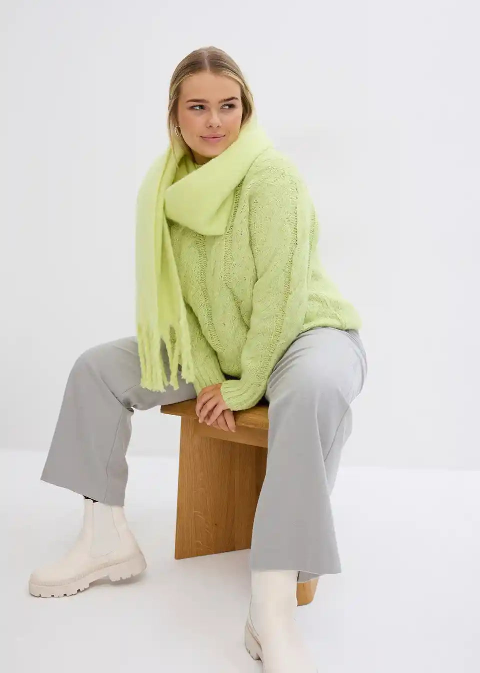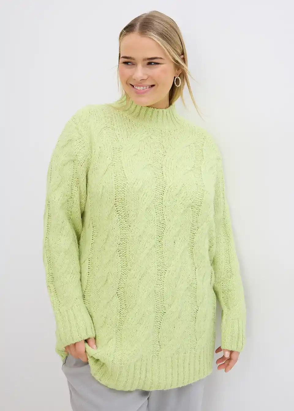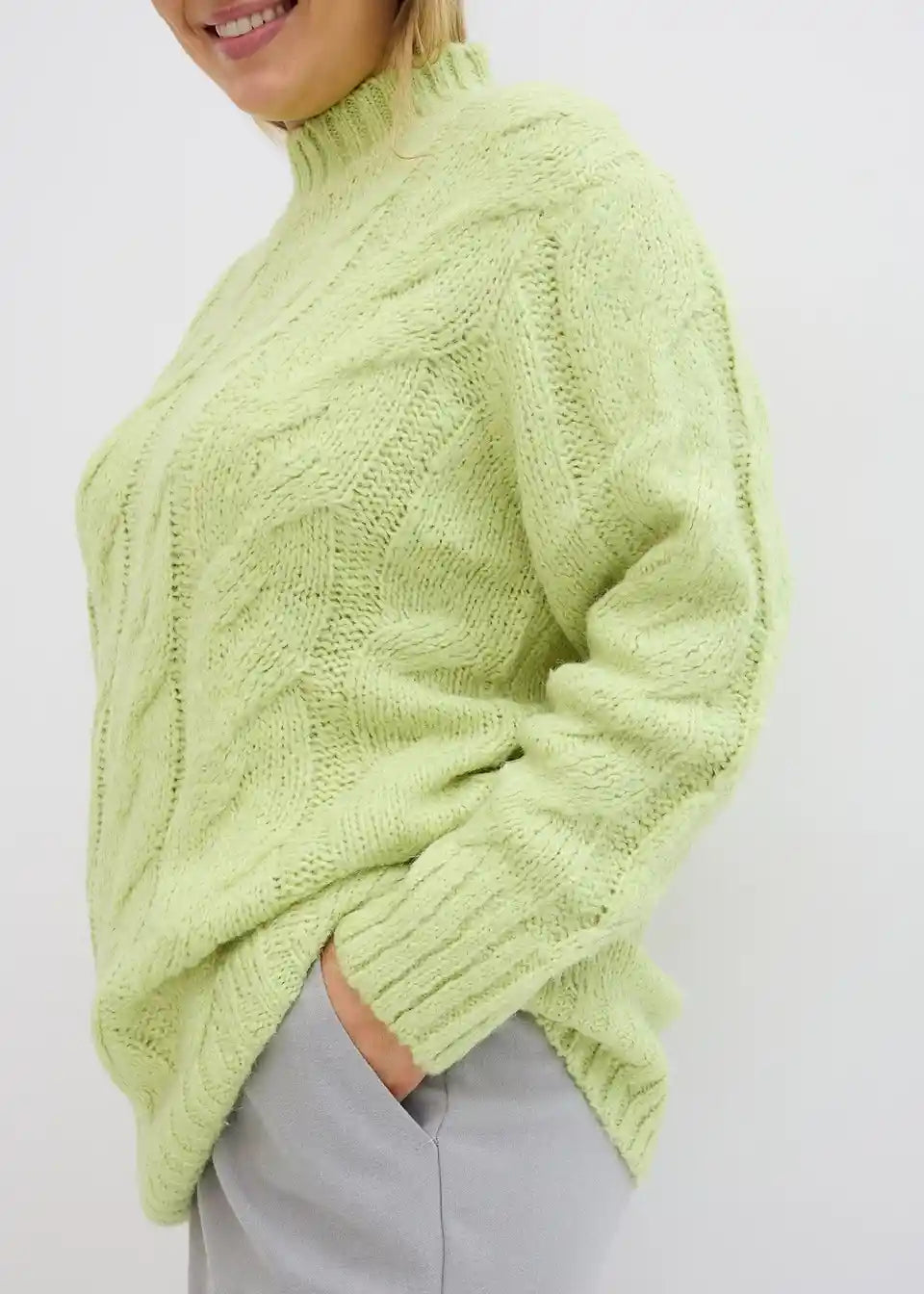 Moderan pleteni pulover s visokim ovratnikom u Boxy izgledu