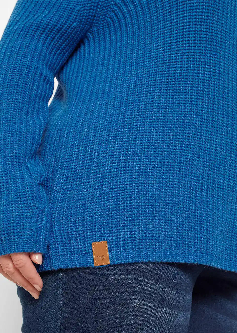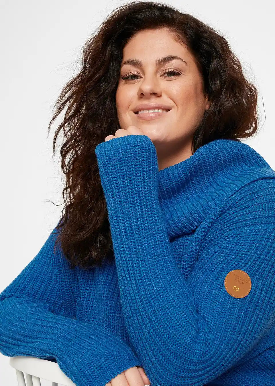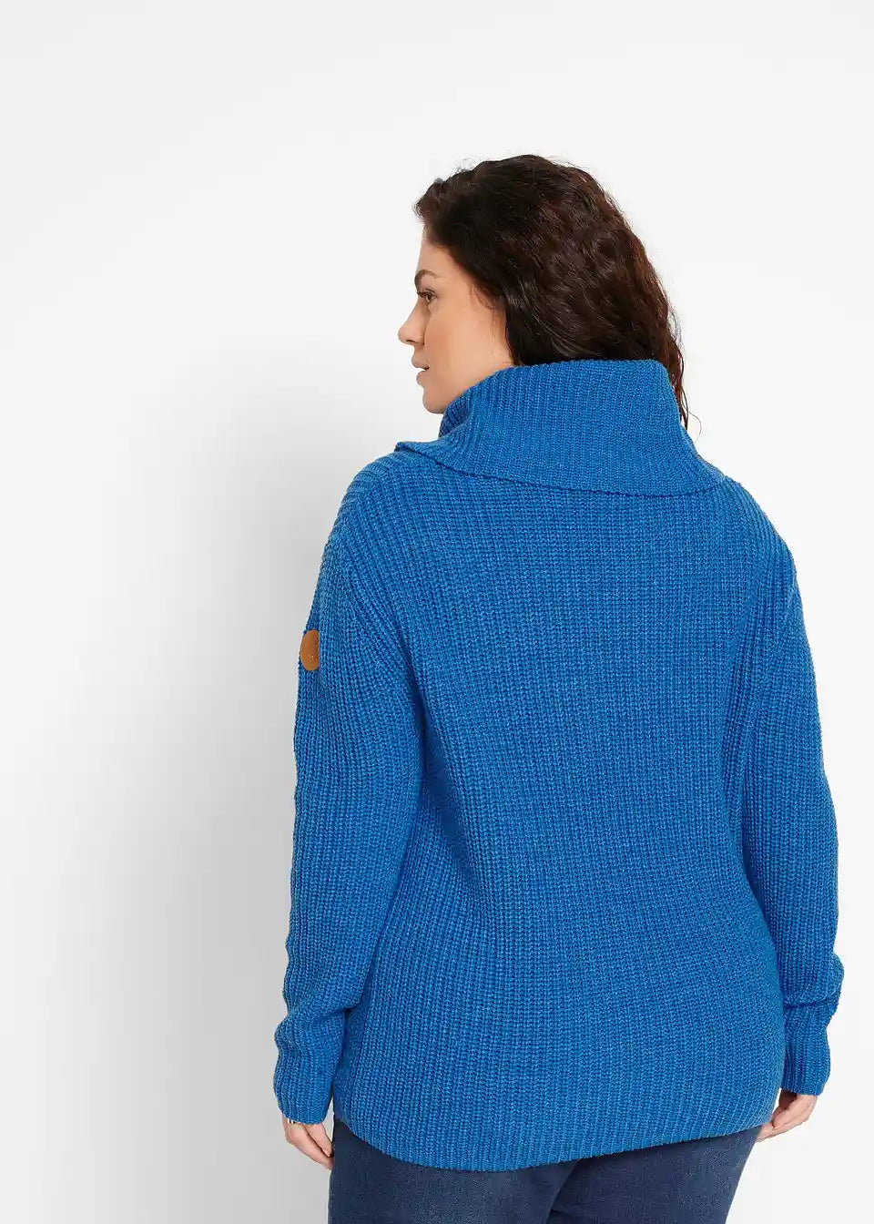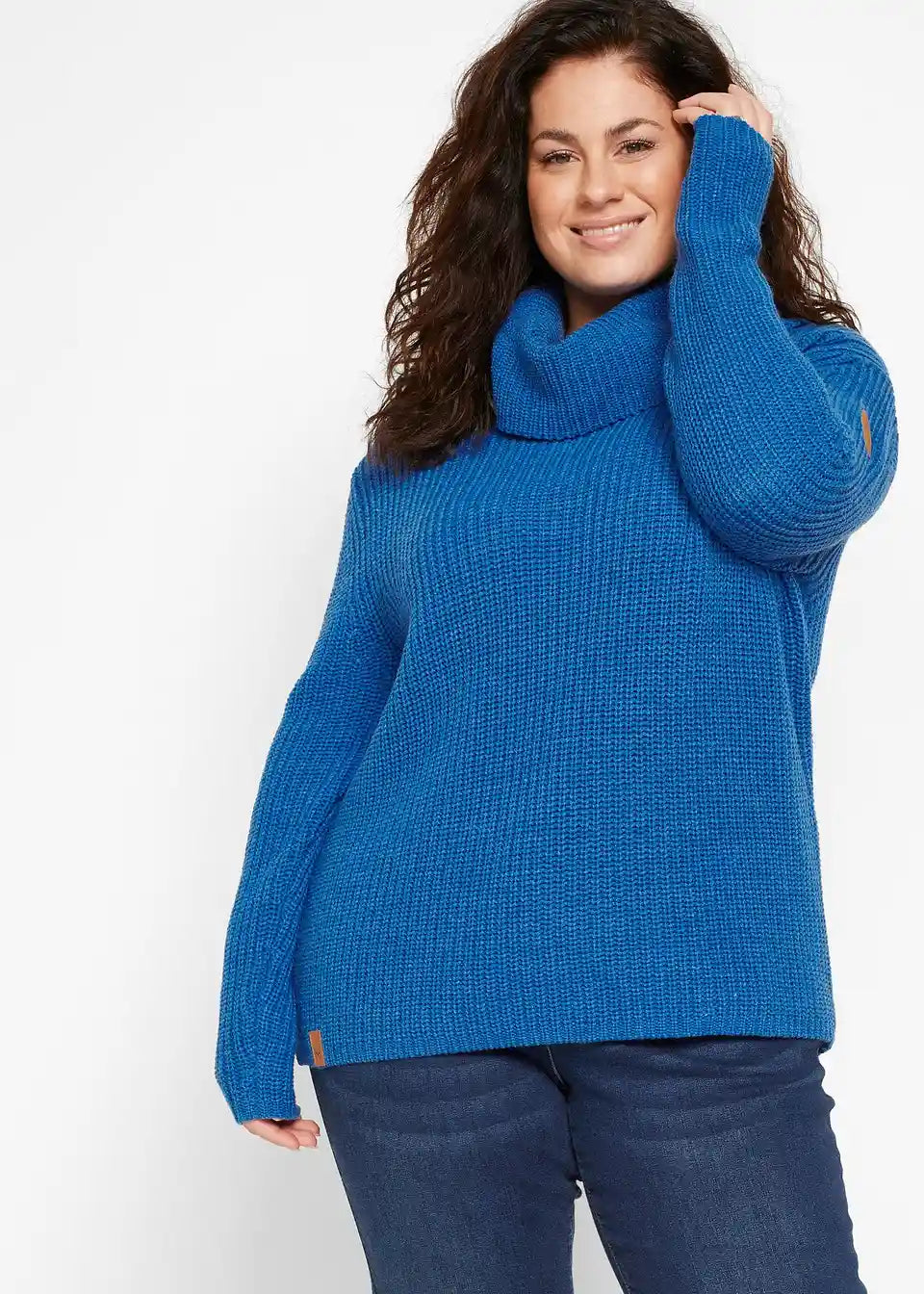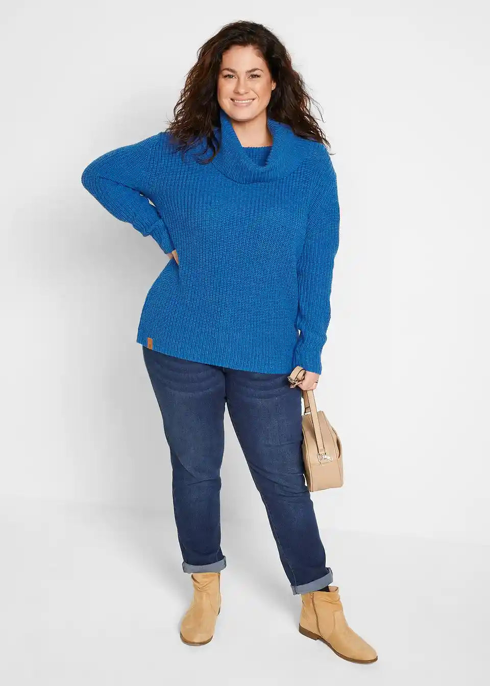 Moderan pleteni pulover sa širokim dolčevita ovratnikom i spuštenim ramenima