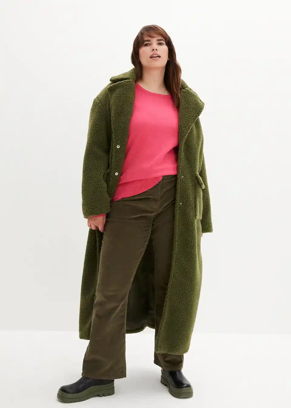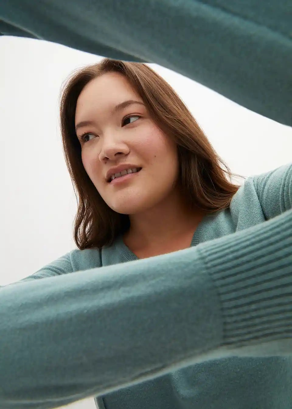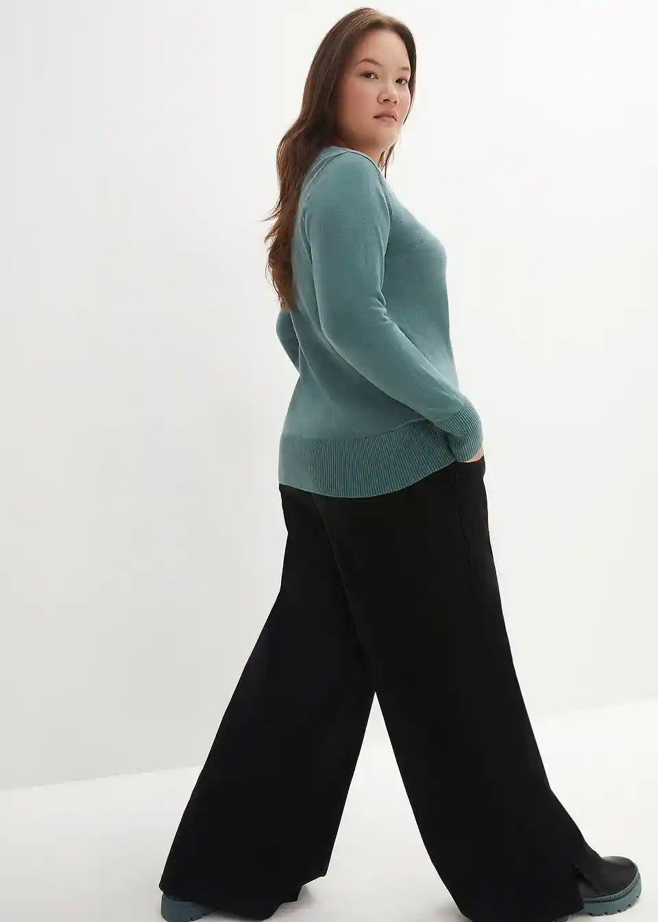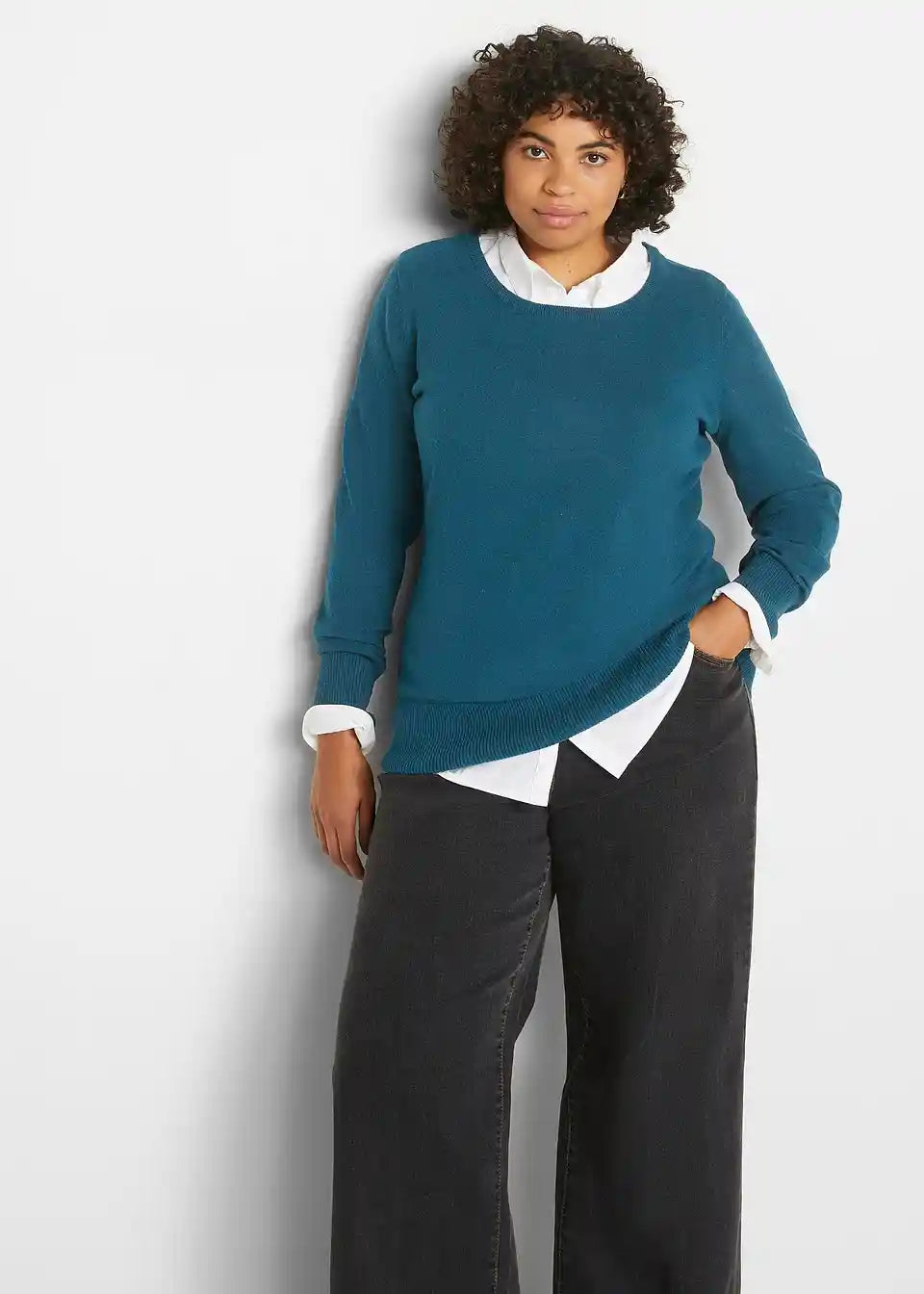 Pulover b.p.c Casual od finog pletiva, s V-izrezom i rebrastim porubima. Duljina od otprilike 64 cm (vel. 36/38) do otprilike 72 cm (vel. 52/54), periv u perilici rublja