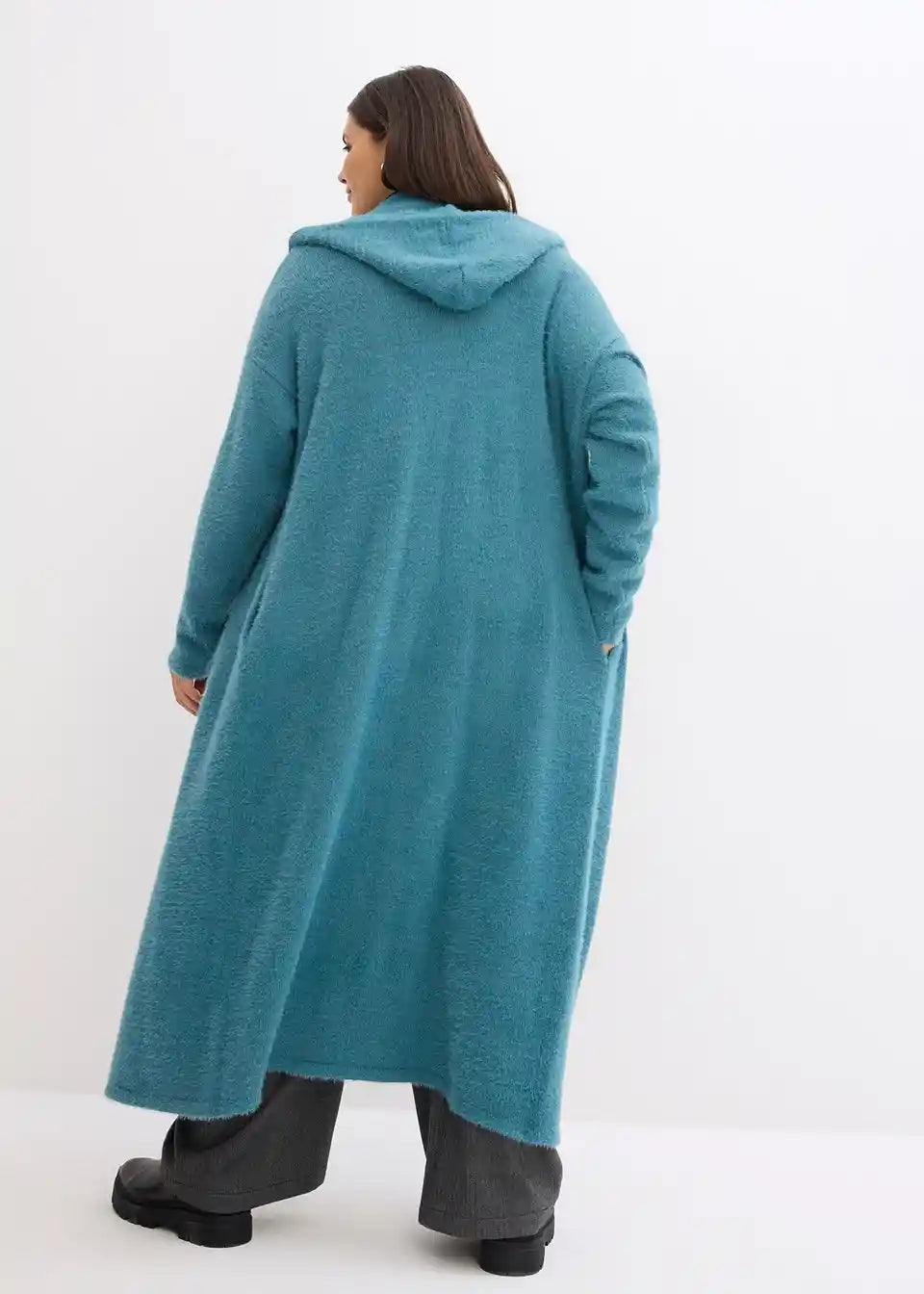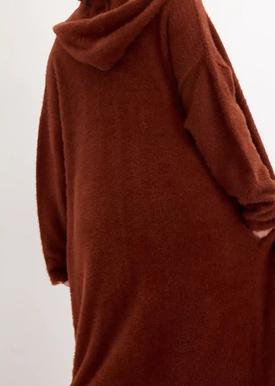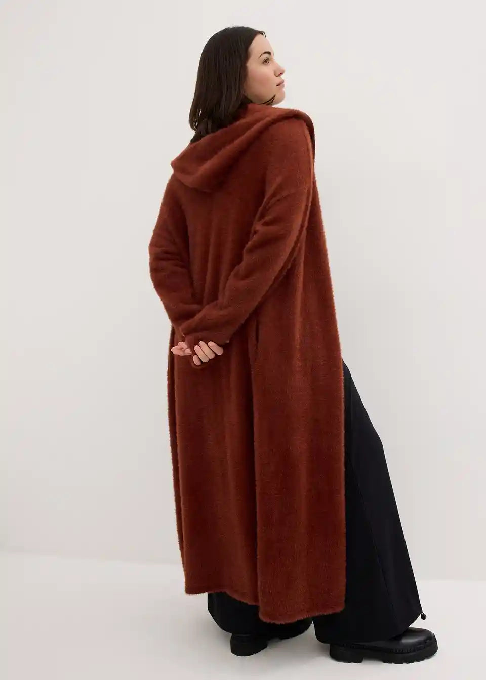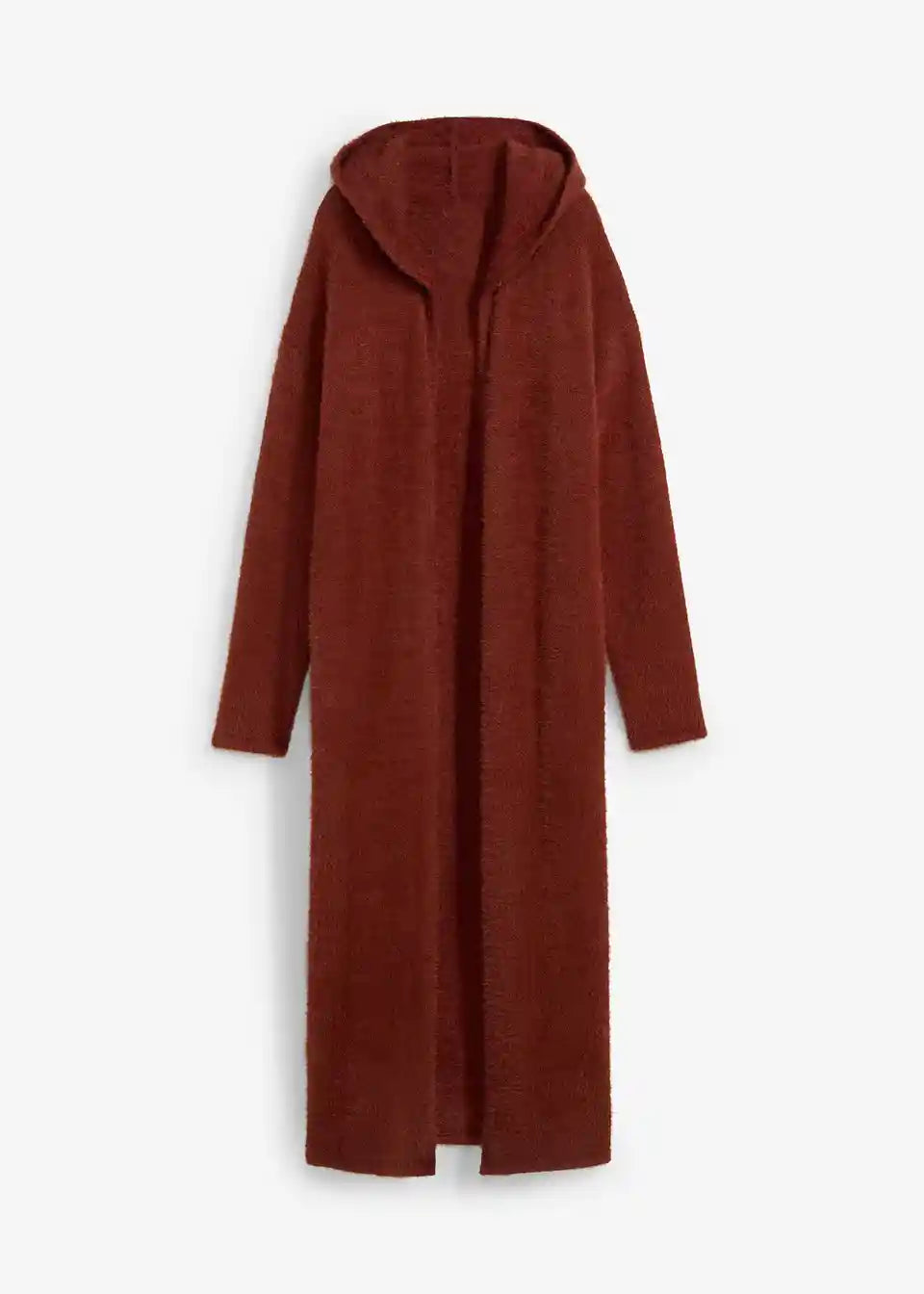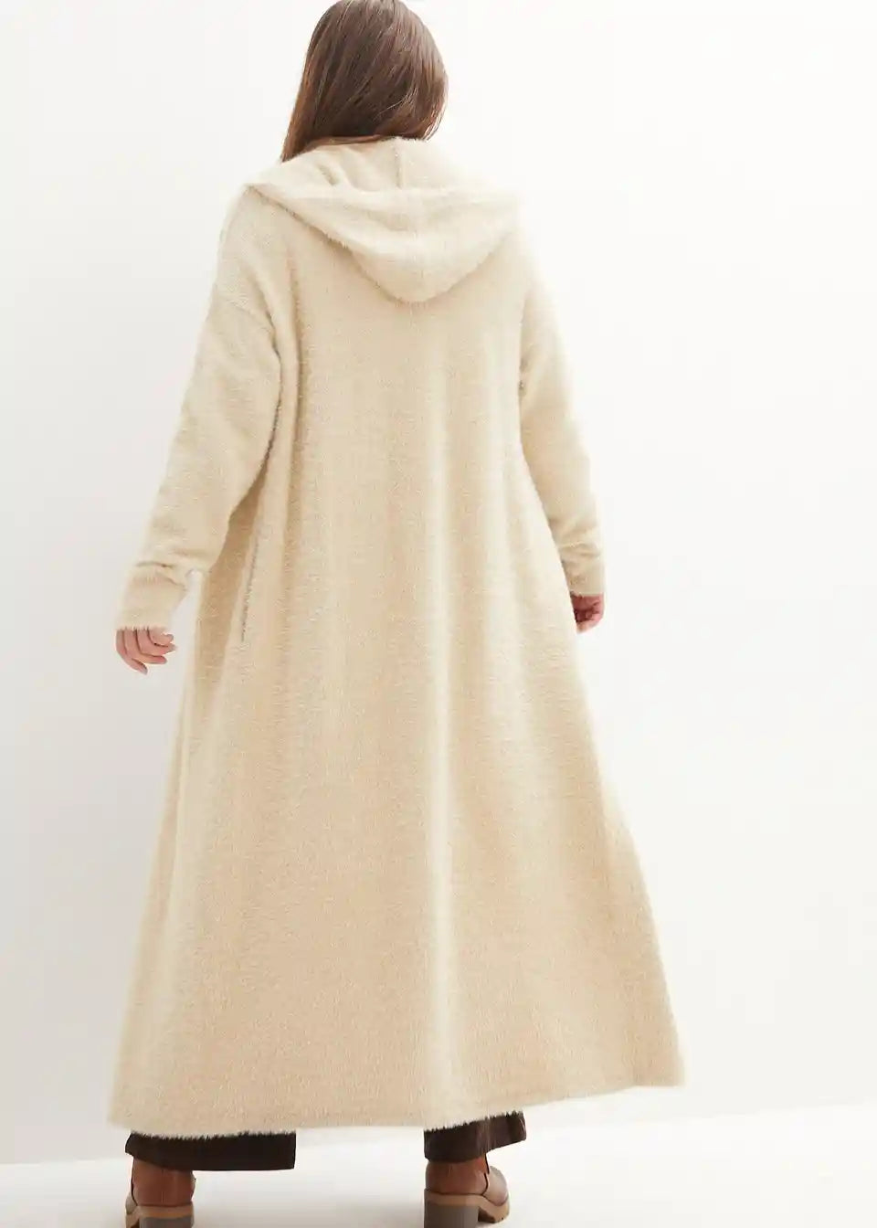 Dugi pleteni kaput s kapuljačom od mješavine viskoze