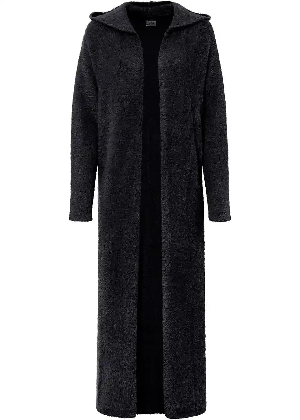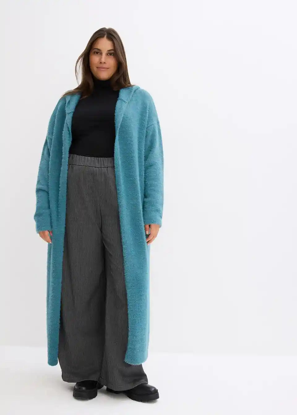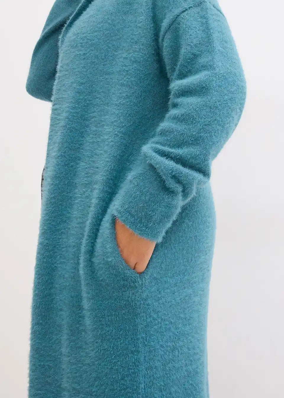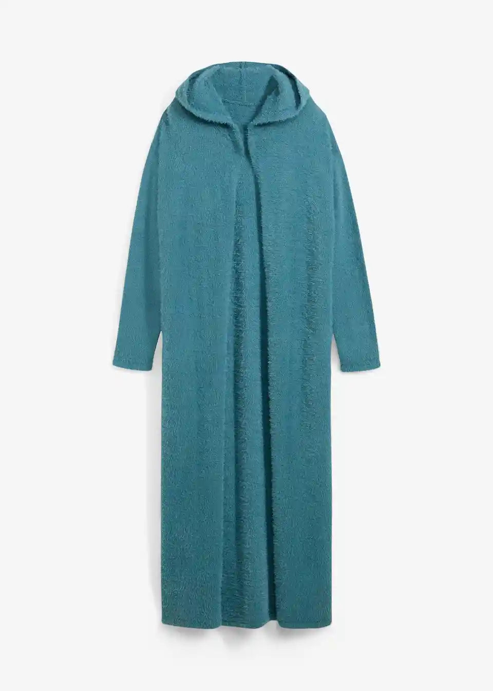 Dugi pleteni kaput s kapuljačom od mješavine viskoze