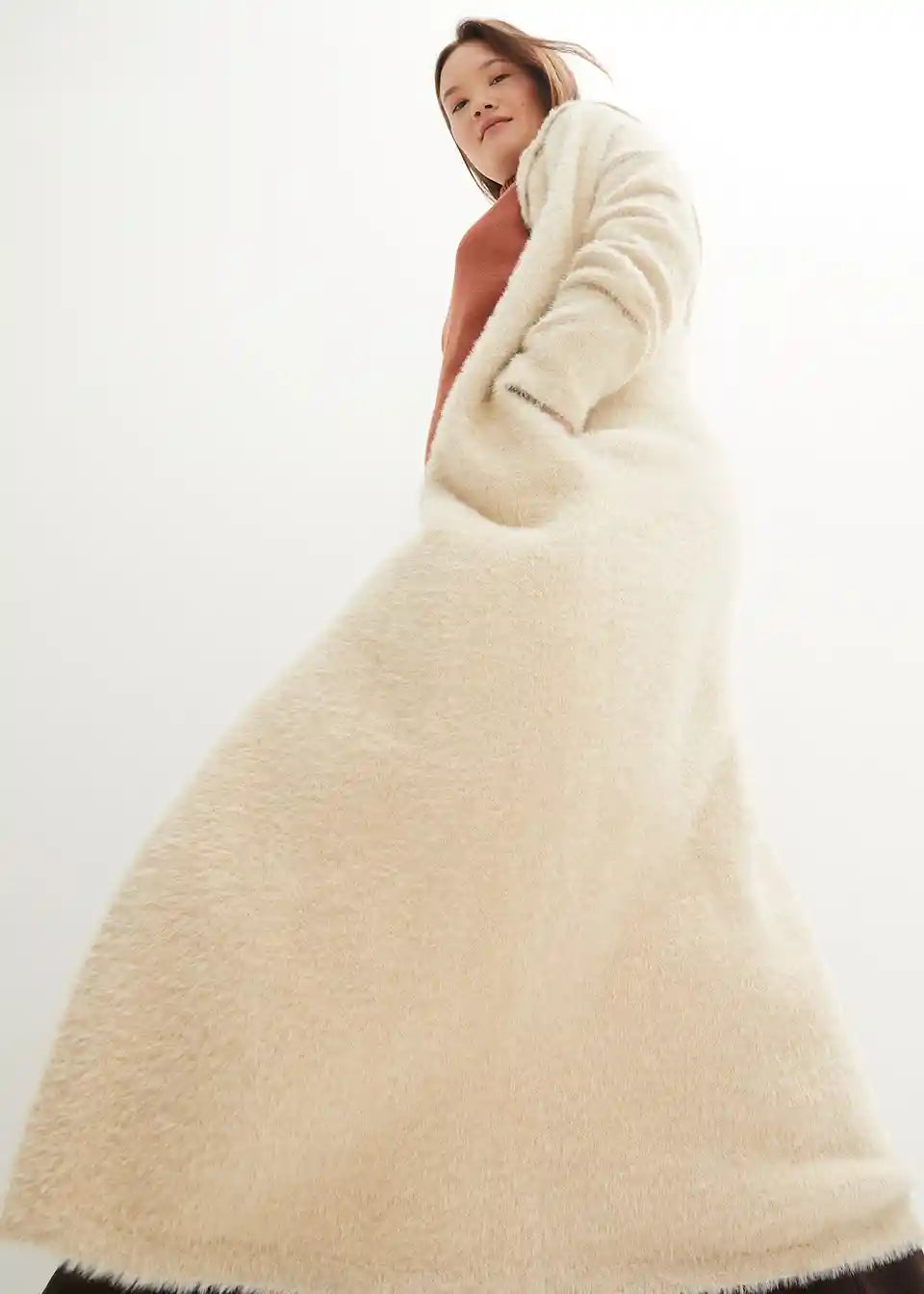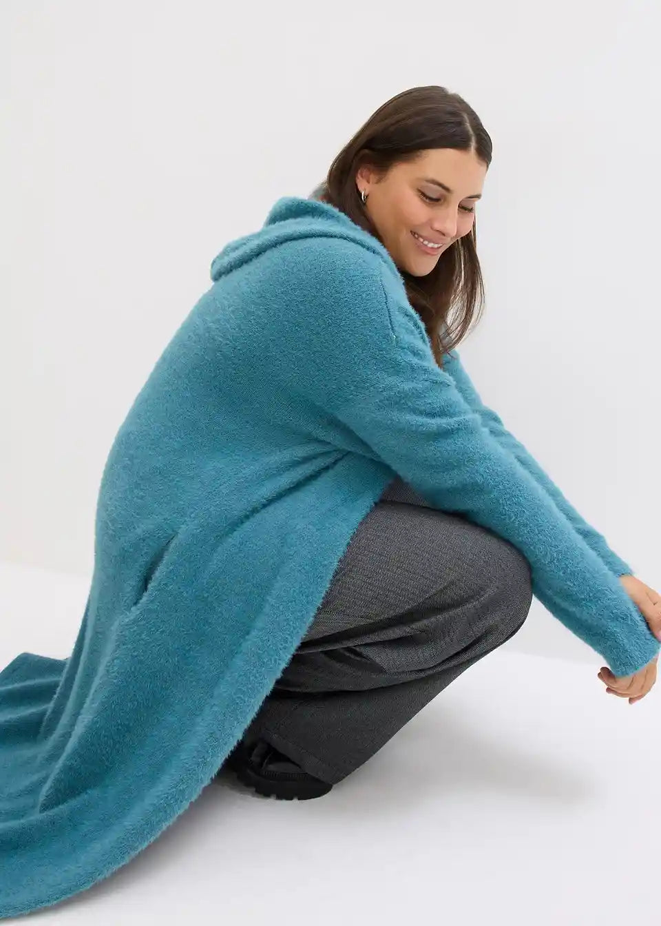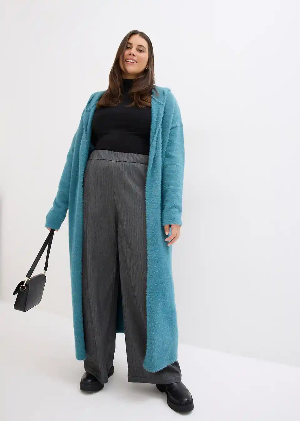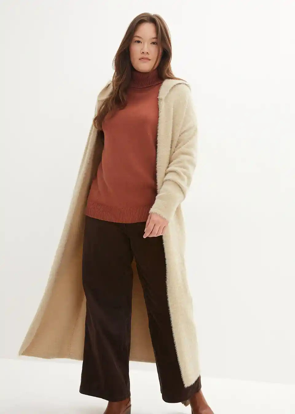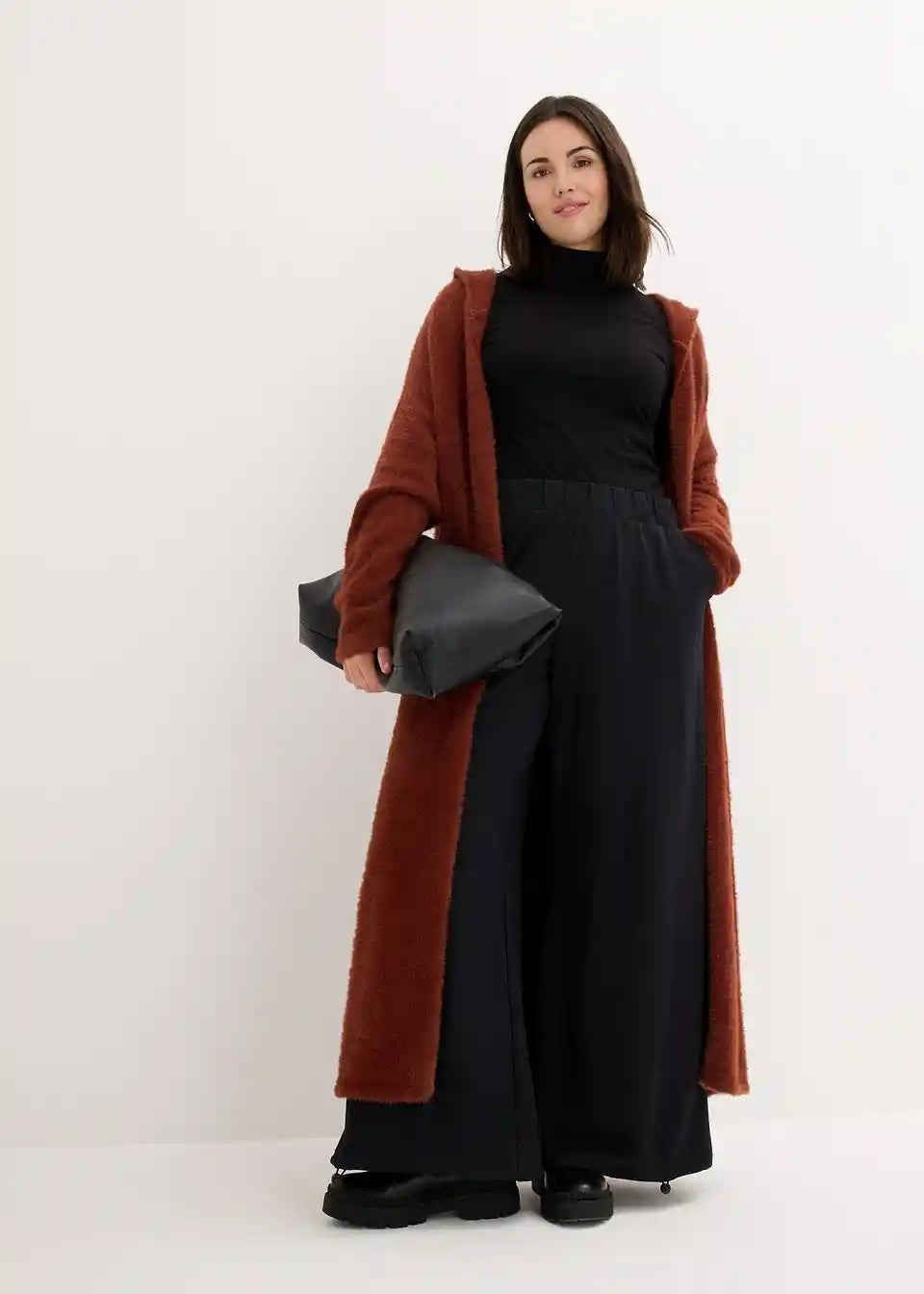 Dugi pleteni kaput s kapuljačom od mješavine viskoze